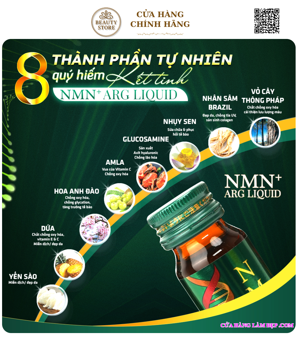 2. Thành phần Nước Uống Đẹp Da NMN Arg Liquid 12000 Peauhonnete: