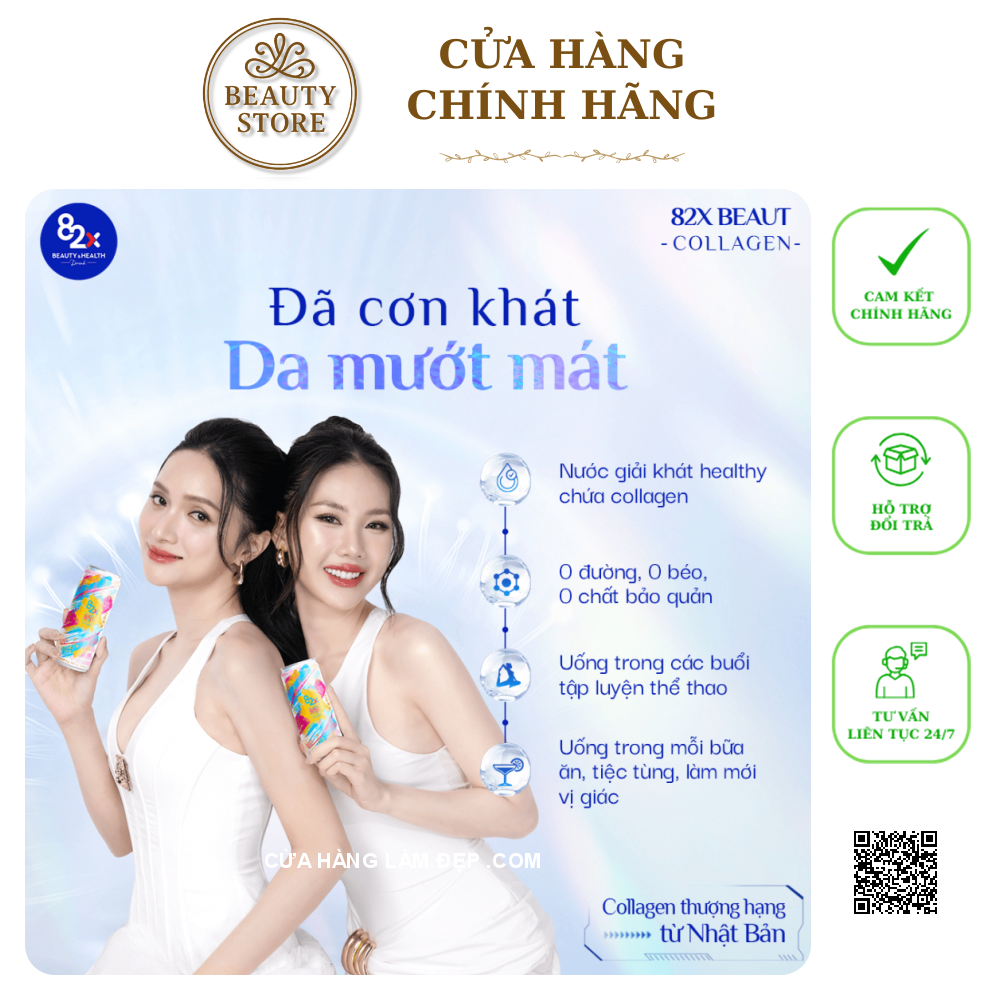 Từ độ tuổi 20 trở đi, Collagen trong cơ thể bắt đầu có sự hao hụt, dao động khoảng 1 – 1,5%/năm. Đến năm 30 tuổi, cơ thể mất trung bình 20-25% lượng Collagen so với thời kỳ đỉnh cao. Đến năm 40 tuổi, lượng Collagen hao hụt có thể lên đến 40-50%. Chính vì vậy, 82X đã cho ra đời dòng sản phẩm nước uống đẹp da hàng ngày, đóng vai trò như 1 “liều Collagen tự nhiên” giúp bổ sung lượng Collagen hao hụt, củng cố cấu trúc cho da săn chắc, trẻ trung, hạn chế tác động của lão hoá.