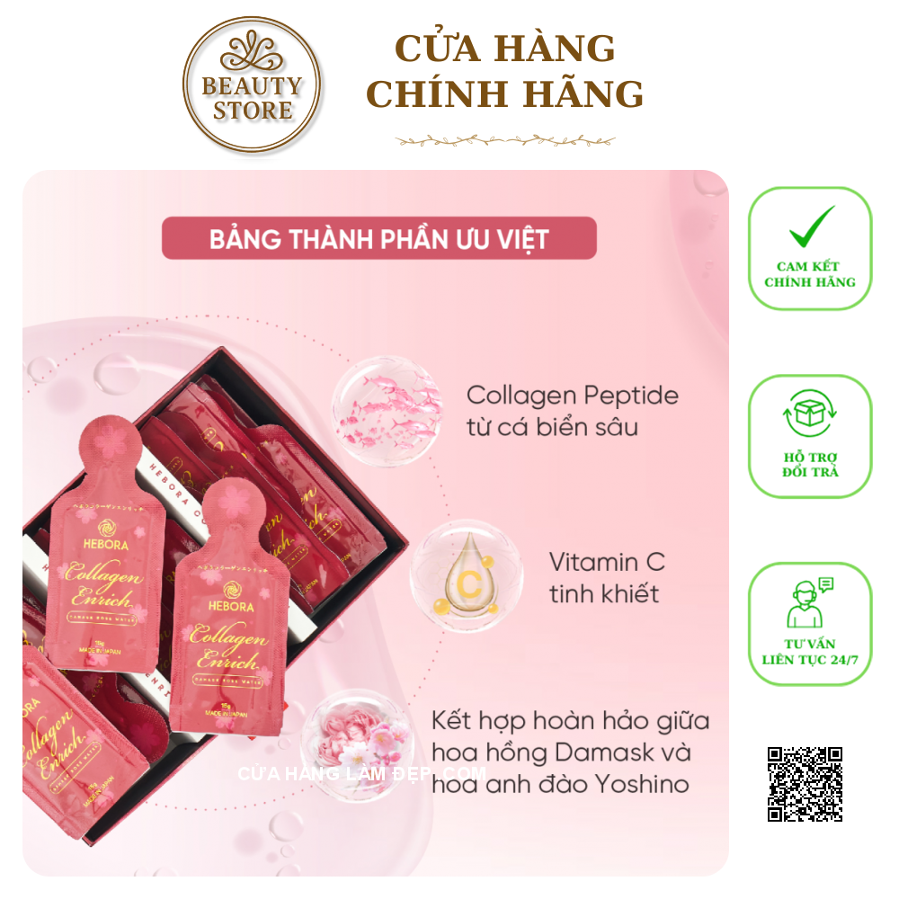 Ngay từ khi ra mắt, nước uống làm đẹp da, ngăn ngừa lão hóa Hebora Collagen Enrich, đặc biệt là sản phẩm Hebora Collagen dạng gói từ thương hiệu danh tiếng hàng đầu Nhật Bản đã nhận được sự đón nhận nồng nhiệt của đông đảo phụ nữ trên khắp xứ sở hoa anh đào và nhanh chóng lan tỏa trên toàn thế giới, trong đó có Việt Nam. Sản phẩm được hơn 3.000.000 phụ nữ sử dụng và trở thành “bảo bối” làm đẹp mà rất nhiều chị em phụ nữ mê mẩn.