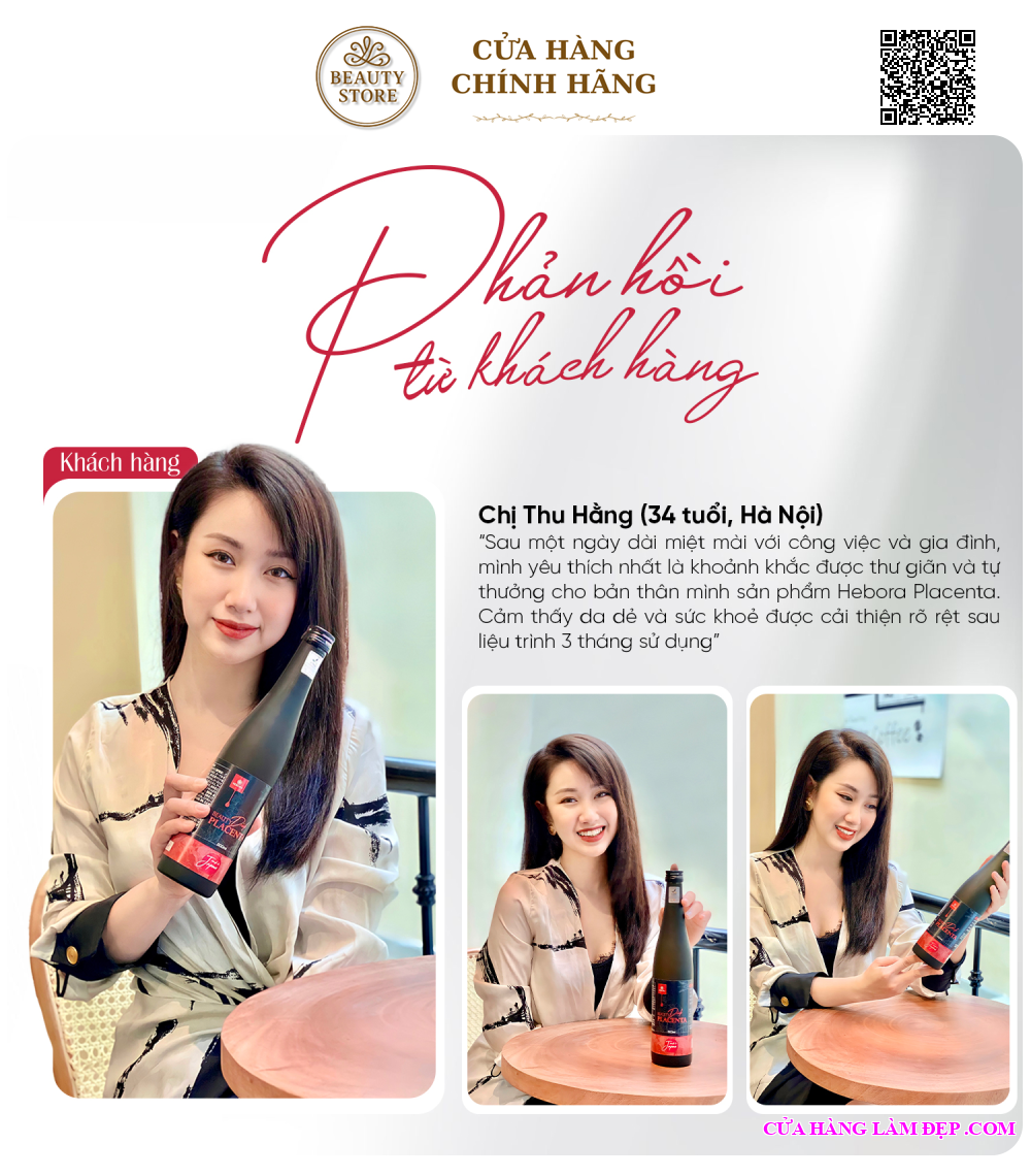- Nước Uống Nhau Thai Hebora Beauty Drink Placenta đã giành được niềm tin của rất nhiều chị em phụ nữ, đặc biệt là những khách hàng quen thuộc của thương hiệu Hebora. Đây cũng là món quà ý nghĩa dành tặng cho phái đẹp, khiến họ trở thành một trong những người phụ nữ đặc biệt đầu tiên sở hữu siêu phẩm làm đẹp mới này.