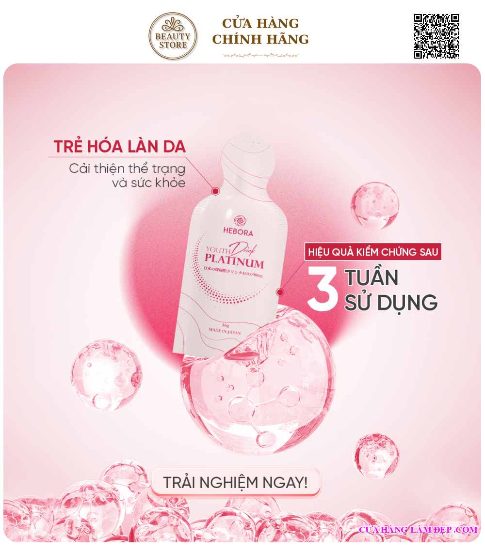 Nước Uống Nhau Thai Hebora Youth Drink Platinum Đẹp Da Tế Bào Của Nhật Bản Hộp 16ml x 28 Gói được khách hàng của Hệ Thống Cửa Hàng Làm Đẹp đánh giá cao.