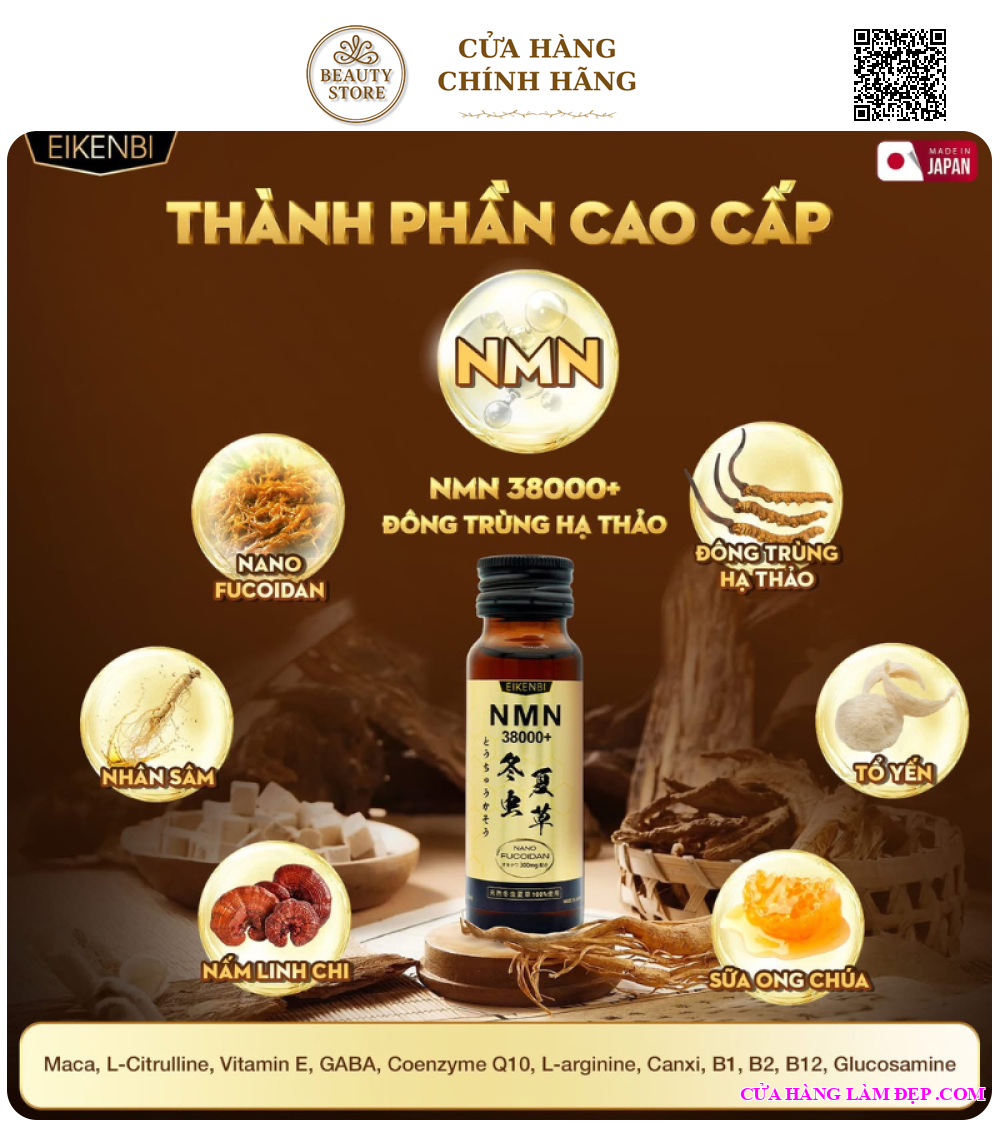 Chắt lọc tinh hoa dược liệu thiên nhiên từ nền Y học Phương Đông kết hợp nền Y học Phương Tây, NMN 38000 + Eikenbi giúp: