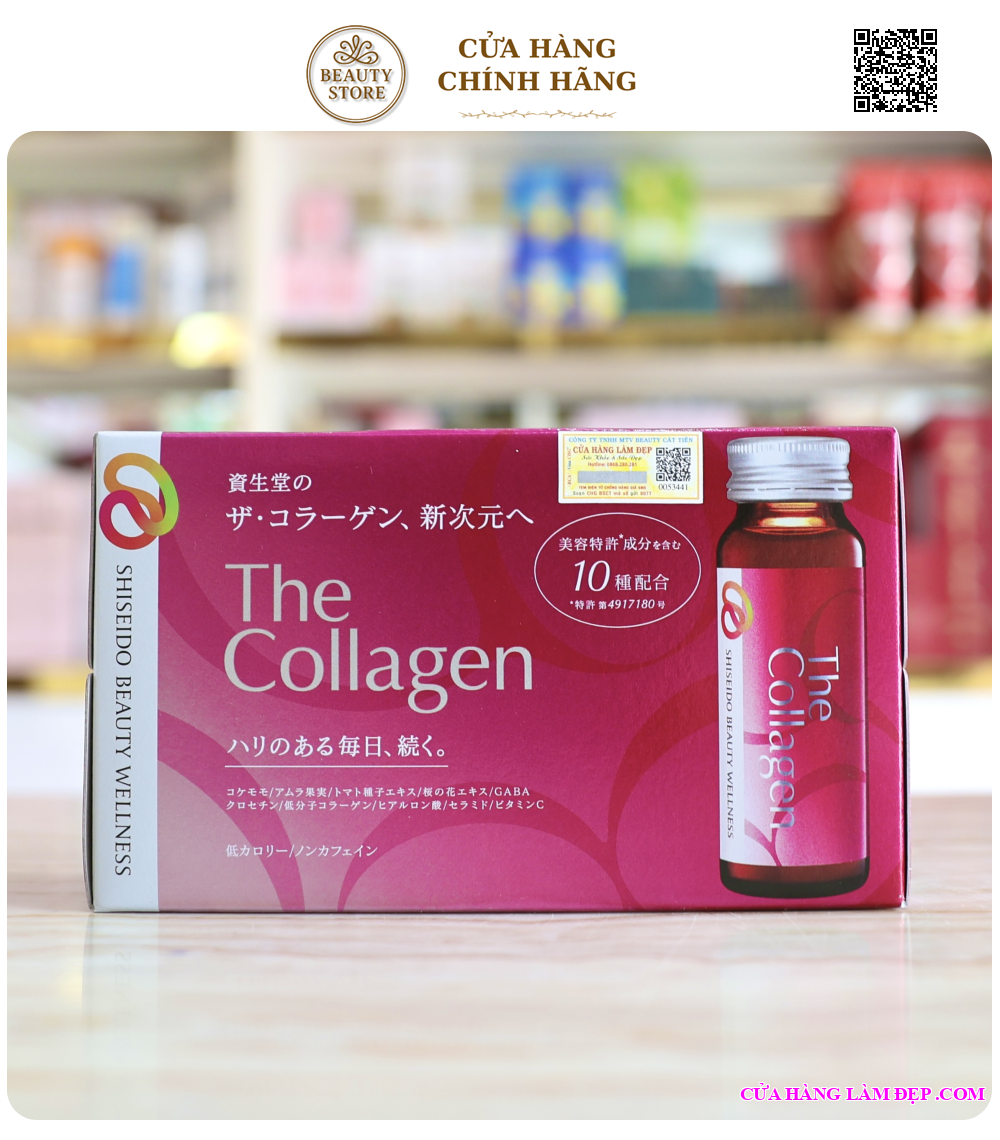 - Collagen là một thành phần giúp cho làn da đàn hồi tốt hơn. Nhưng qua thời gian và tuổi tác, lượng Collagen tự nhiên trong cơ thể sẽ giảm dần khiến làn da bạn mất đi vẻ mịn màng, da xuất hiện những nếp nhăn, khô da và bắt đầu lão hóa. Vì vậy, việc bổ sung Collagen cho cơ thể là rất cần thiết, để cho bạn một làn da mềm mại và mịn màng. - Nước Uống The Collagen Shiseido của Nhật là sản phẩm bổ sung collagen cùng các loại vitamin và dưỡng chất giúp chăm sóc và cải thiện làn da hiệu quả.