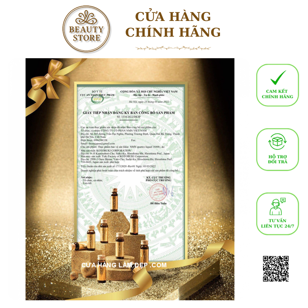 Nước Uống Trường Thọ, Trẻ Hoá Da NMN Quattro Liquid 15000 được khách hàng của Hệ Thống Cửa Hàng Làm Đẹp đánh giá cao. Bạn có thể xem thêm nội dung đánh giá dưới phần bình luận. Hệ thống Cửa Hàng Làm Đẹp là nơi cung cấp các dòng sản phẩm thực phẩm chức năng chăm sóc sức khỏe và làm đẹp cao cấp, chính hãng: + Chúng tôi xin cam kết về chất lượng sản phẩm và chính sách ưu đãi hợp lý cho khách hàng. + Cam kết sản phẩm chính hãng, đầy đủ hóa đơn chứng từ, hàng hoá có nguồn gốc rõ ràng. + Giá ưu đãi tốt nhất thị trường. + Giao hàng toàn quốc: Nhanh chóng - Tiện lợi - Uy tín. + Tư vấn tận tình, chính sách hậu mãi tốt. + Giờ mở cửa hàng: Từ thứ 2 đến Chủ Nhật: 7h30 đến 21h30.