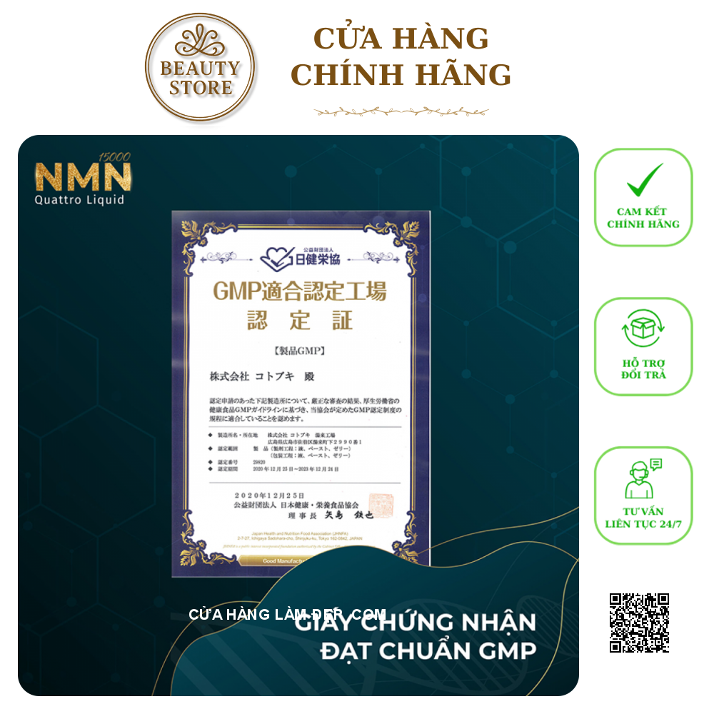 Nước Uống Trường Thọ, Trẻ Hoá Da NMN Quattro Liquid 15000 có xuất xứ từ Nhật Bản.