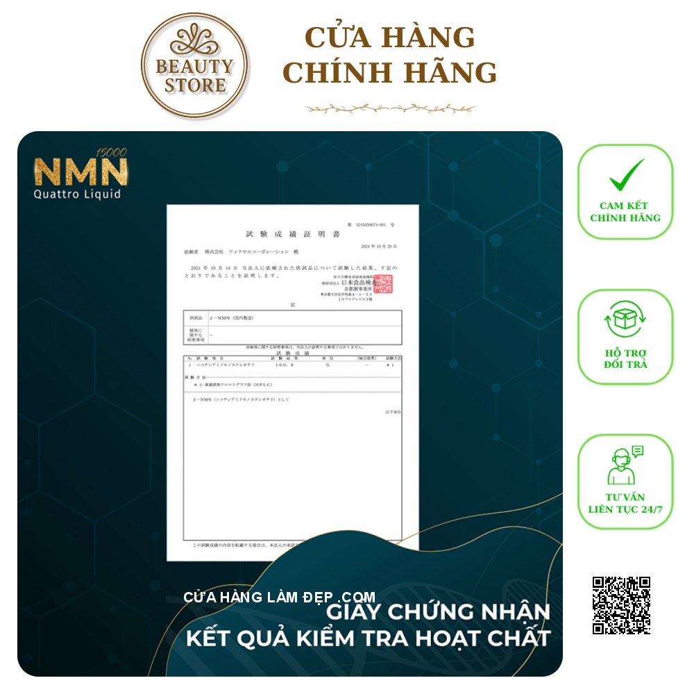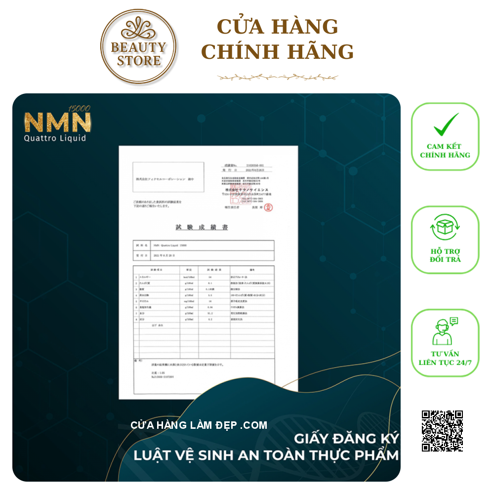 Tại Hệ Thống Cửa Hàng Làm Đẹp, Nước Uống Trường Thọ, Trẻ Hoá Da NMN Quattro Liquid 15000 có giá: 7.990.000 VND
