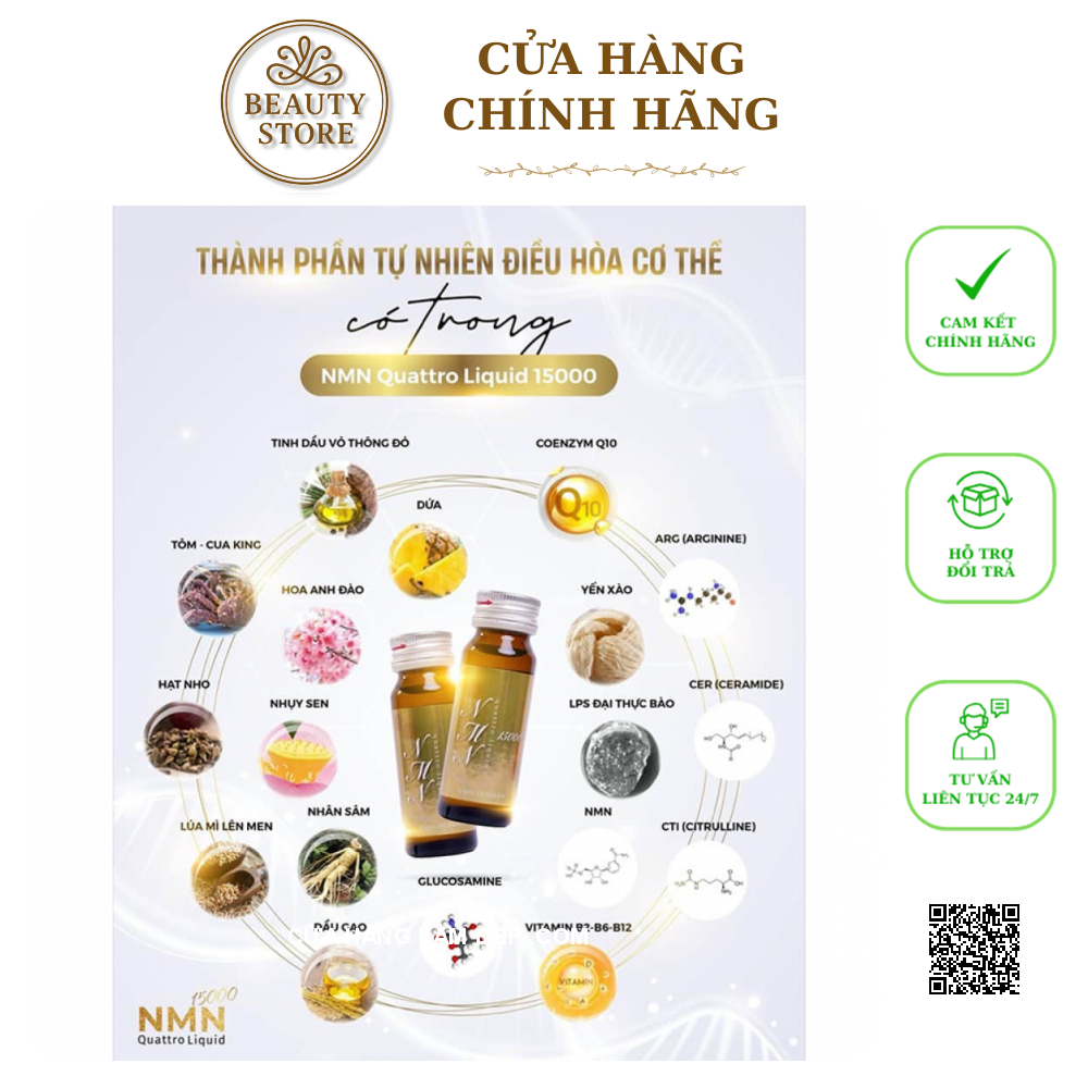6. Địa Chỉ Mua Nước Uống Trường Thọ, Trẻ Hoá Da NMN Quattro Liquid 15000 Chính Hãng: