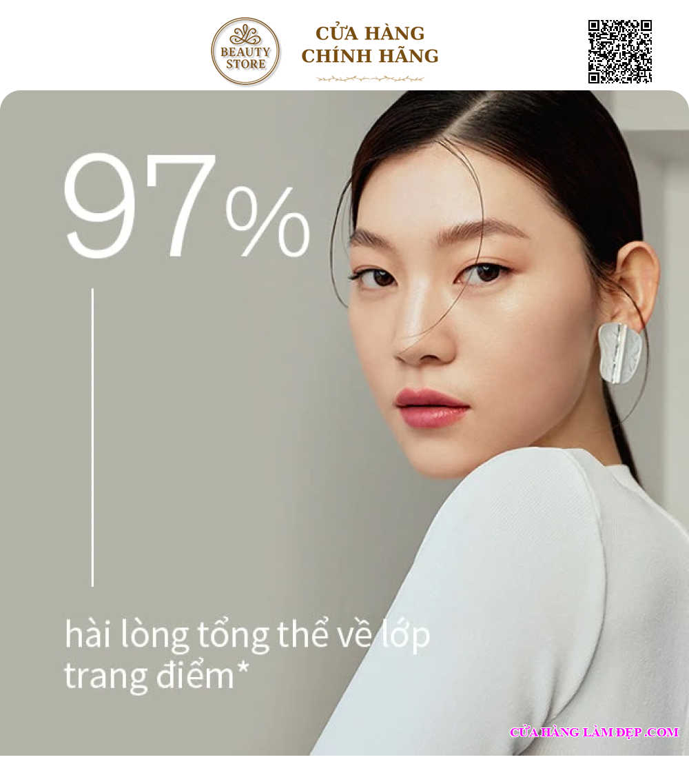 Lớp nền mỏng nhẹ thoáng khí giúp da được hít thở thoải mái lại vừa bám chặt vào da trong thời gian dài, lớp nền bền màu suốt 24h. 90% cảm thấy thoải mái sau khi trang điểm hoàn chỉnh.