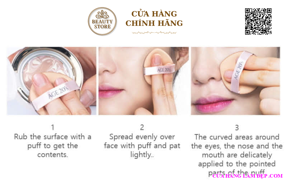 3. Hướng dẫn sử dụng Phấn Tươi Dưỡng Da Che Phủ Tốt AGE 20's Signature Essence Cover Pact Intense Cover #21 Light Beige: