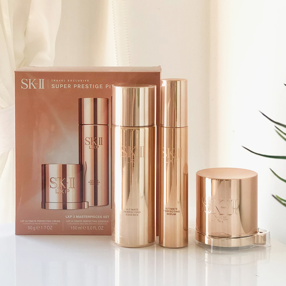 Bộ sản phẩm gồm 3 món: Nước Thần SK-II LXP Ultimate Perfecting Essence 150ml, Serum SK-II LXP Ultimate Perfecting Serum 50ml, Kem Dưỡng SK-II LXP Ultimate Revival Cream 50gr.