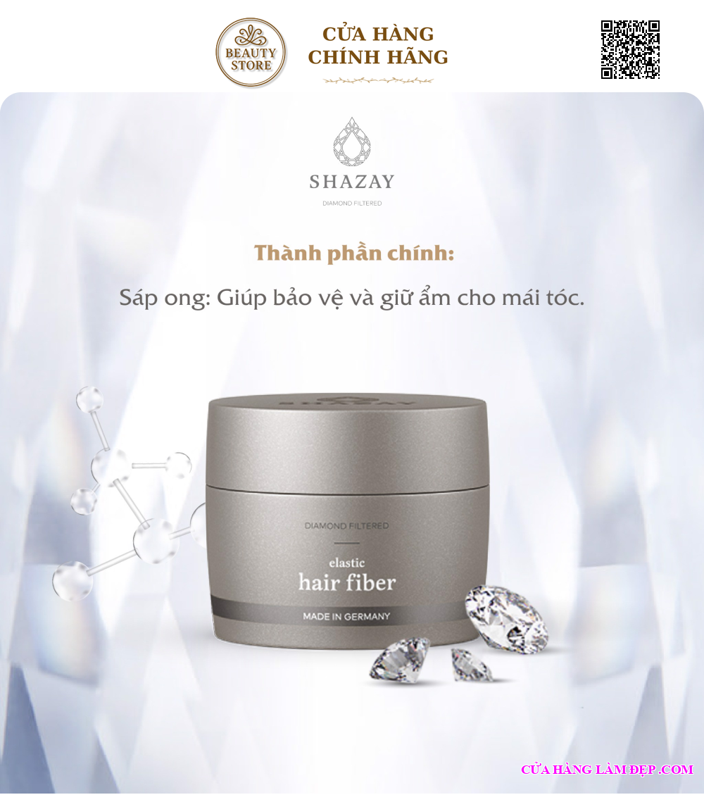 - Giữ nếp ổn định, định hình phong cách: Sáp tạo kiểu tóc Shazay Elastic Hair Fiber với sự kết hợp giữa nước lọc kim cương và sáp ong mang lại trải nghiệm tuyệt vời với khả năng giữ nếp ổn định suốt ngày dài, linh hoạt từng lọn tóc, mái tóc dẻo dai, không bết dính và bóng mượt tự nhiên.