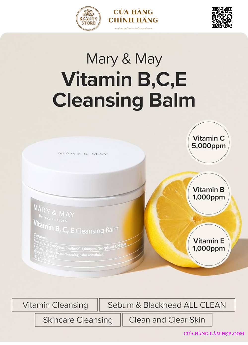 Sáp Tẩy Trang Mary&May Vitamin B, C, E Cleansing Balm Hàn Quốc 120g được khách hàng của Hệ Thống Cửa Hàng Làm Đẹp đánh giá cao. Bạn có thể xem thêm nội dung đánh giá dưới phần bình luận