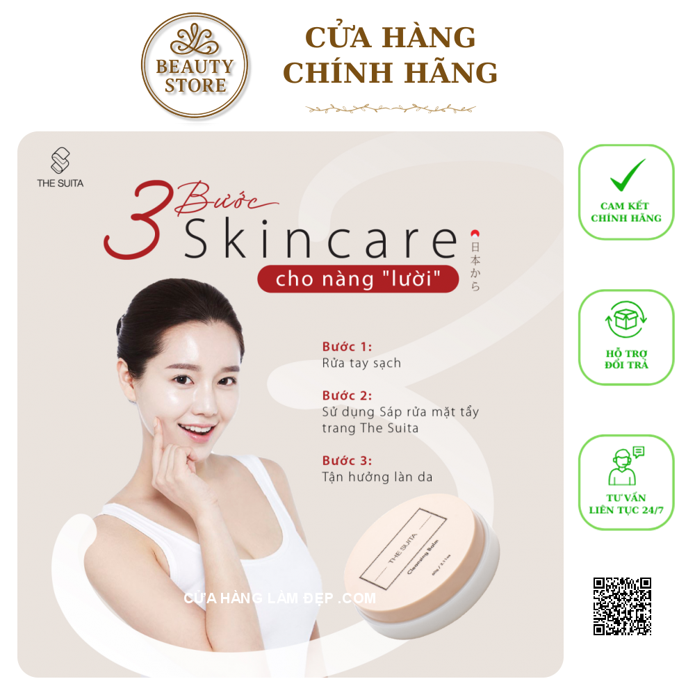 - Sáp rửa mặt tẩy trang The Suita là sáp dạng dưỡng da, với thành phần gốc dầu từ thực vật đóng vai trò chính trong quá trình tẩy trang và làm sạch da. Giúp làn da mềm mại và căng bóng với 1 bước tẩy trang duy nhất.