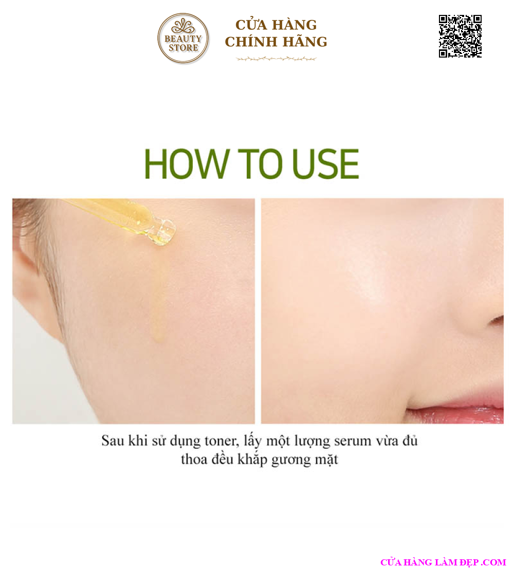 Sau bước toner, thoa 1 lượng sản phẩm vừa đủ lên da mặt và tránh vùng mắt cho đến khi tinh chất thẩm thấu toàn bộ.