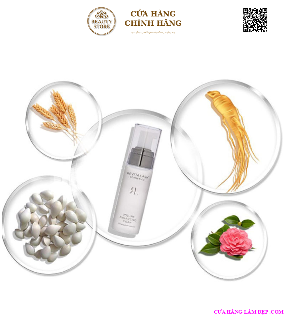- Với công thức BioPeptin Complex® độc quyền, bao gồm các thành phần Lipid, Peptide, Biotin và Panthenol, sản phẩm nuôi dưỡng sâu và tăng cường sức sống cho mái tóc. Đồng thời, Revitalash Volume Enhancing Foam hỗ trợ cân bằng da đầu, cải thiện độ đàn hồi của tóc và bảo vệ tóc khỏi tình trạng gãy rụng, giúp mái tóc luôn chắc khỏe và bồng bềnh.