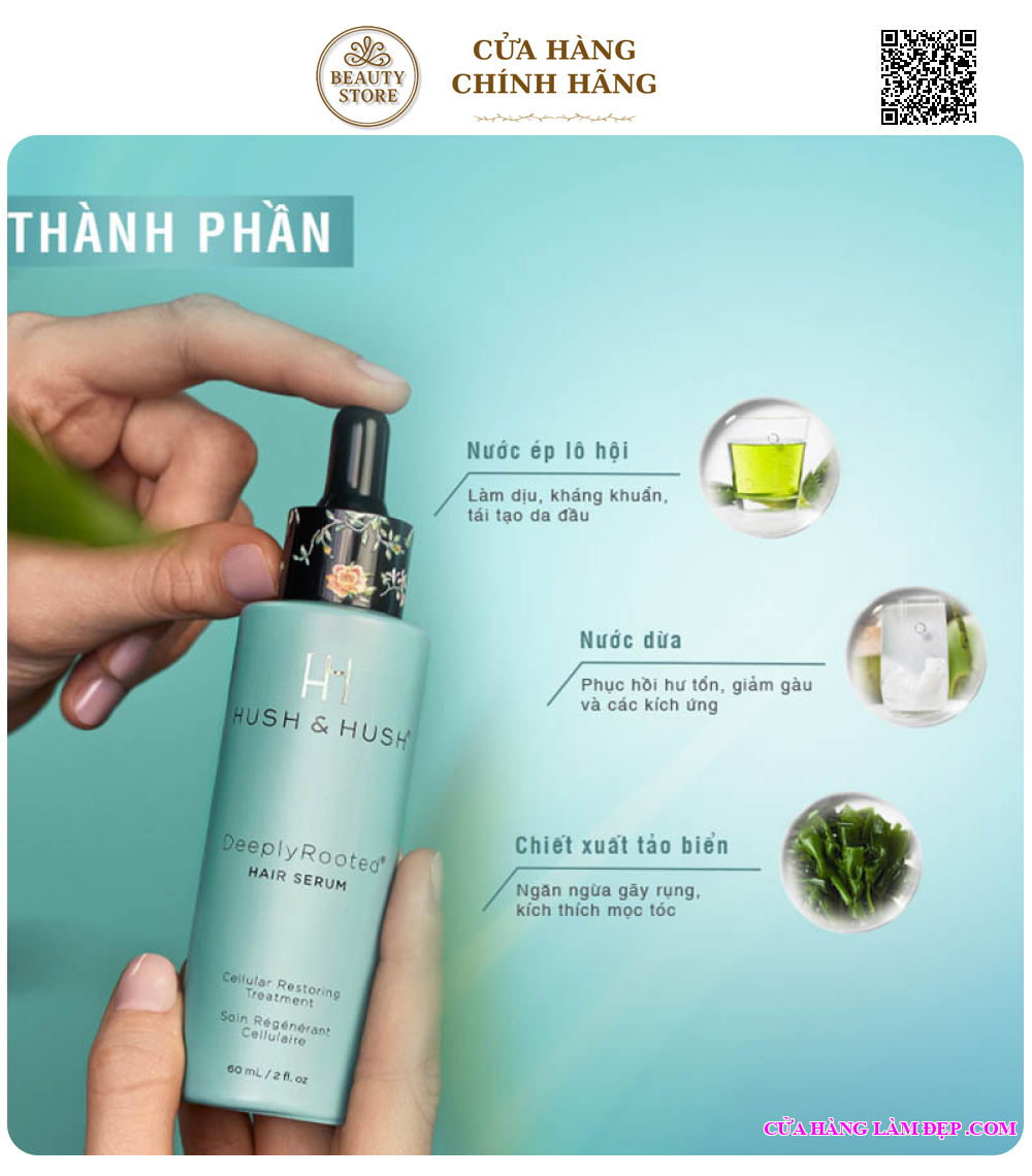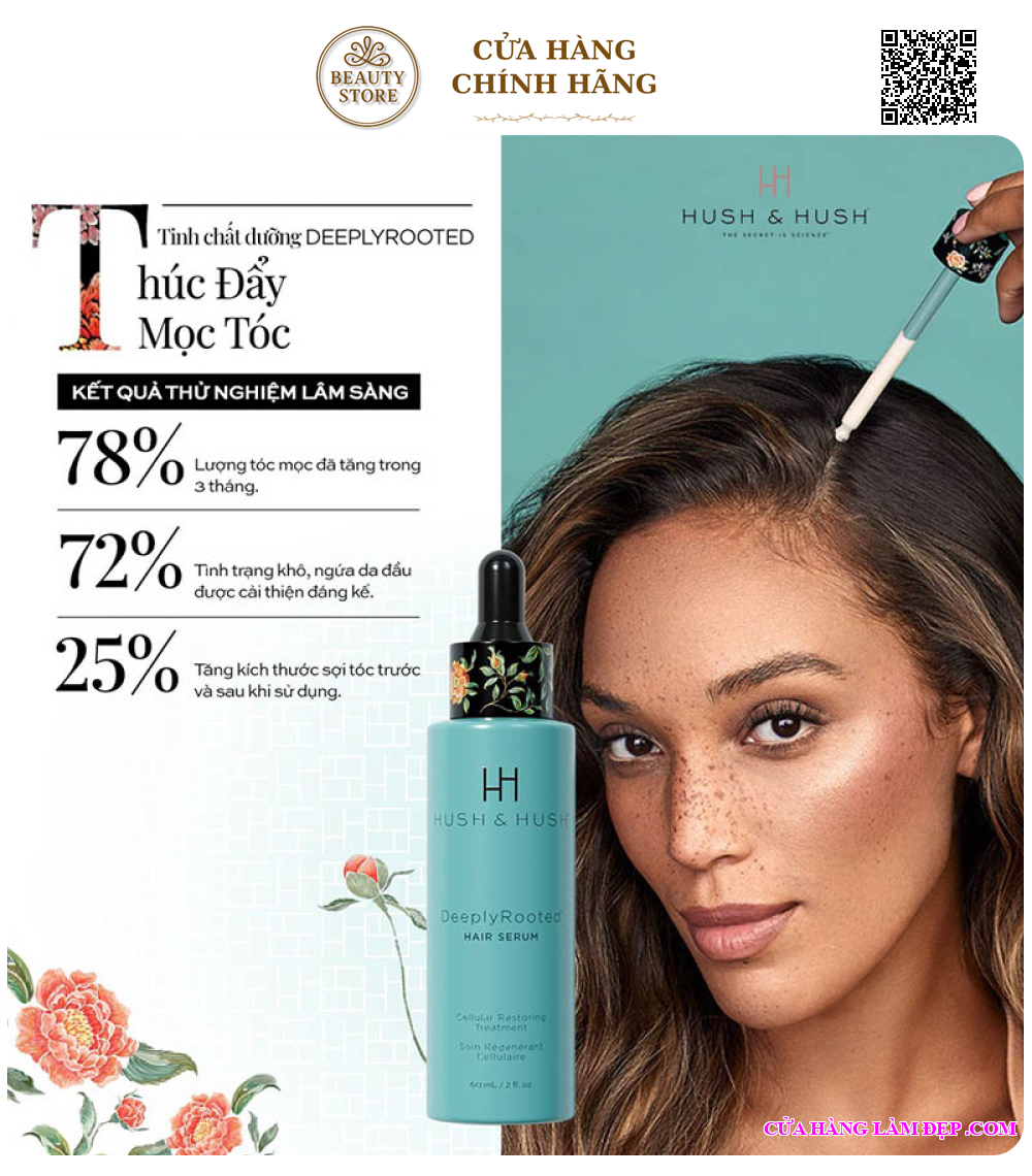- Hãy sử dụng DeeplyRooted Hair Serum sử dụng các sản phẩm cùng dòng của Hush & Hush là: dầu gội, dầu xả và viên uống chống rụng, phục hồi tóc Hush & Hush DeeplyRooted để chăm sóc và nuôi dưỡng tóc toàn diện.