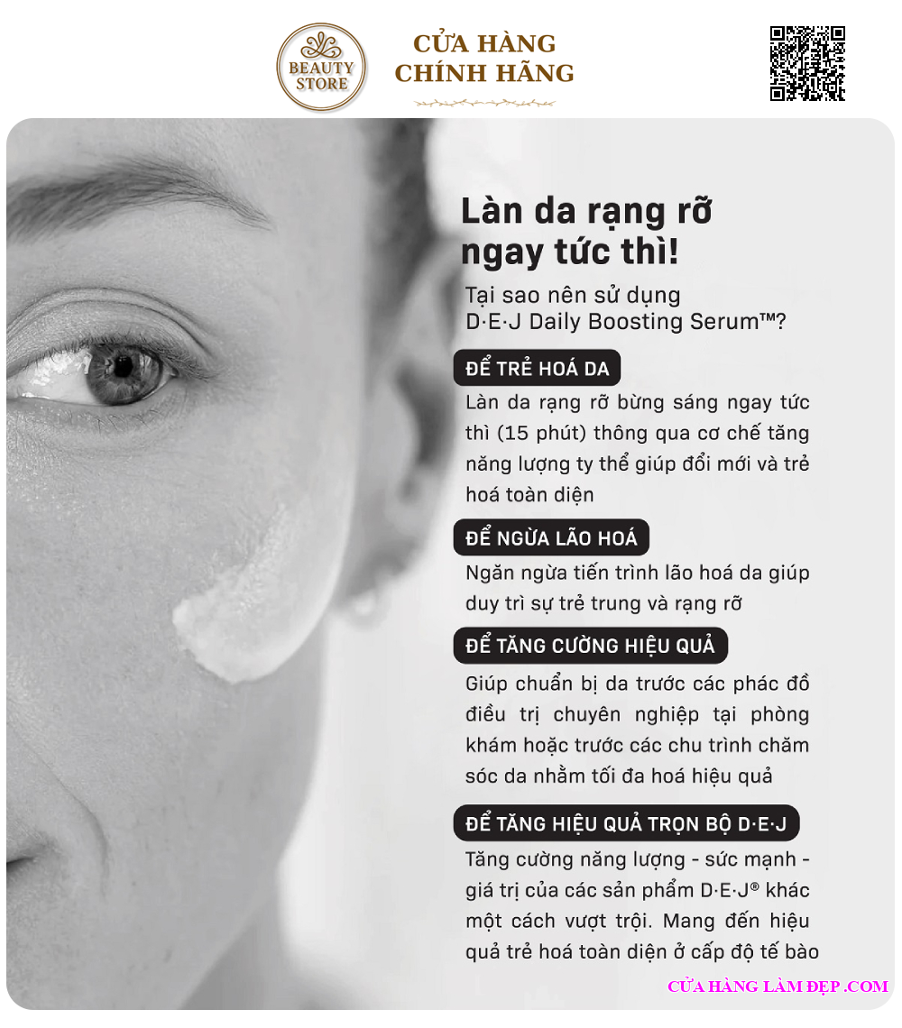 Tăng cường năng lượng – sức mạnh – giá trị của các sản phẩm D-E-J® khác một cách vượt trội. Mang đến hiệu quả trẻ hoá toàn diện ở cấp độ tế bào.