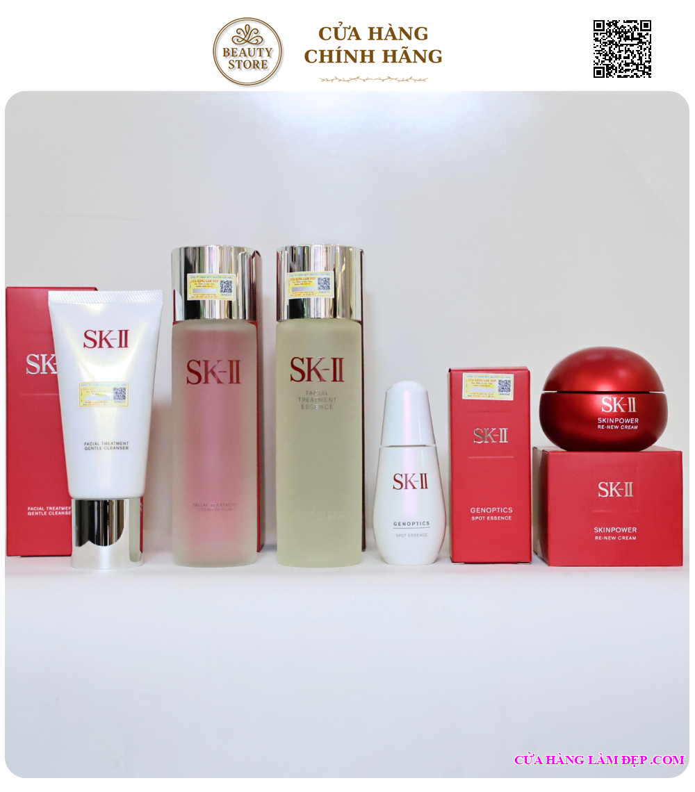 Bộ 5 món cao cấp từ SK-II là giải pháp chăm sóc da chuyên sâu dành cho làn da nám, tàn nhang, xỉn màu và có dấu hiệu lão hóa. Sự kết hợp giữa tinh chất đặc trị GenOptics Spot Essence và dòng dưỡng chống lão hóa giúp tác động toàn diện: vừa làm mờ sắc tố, vừa tái tạo và tăng độ đàn hồi cho da.