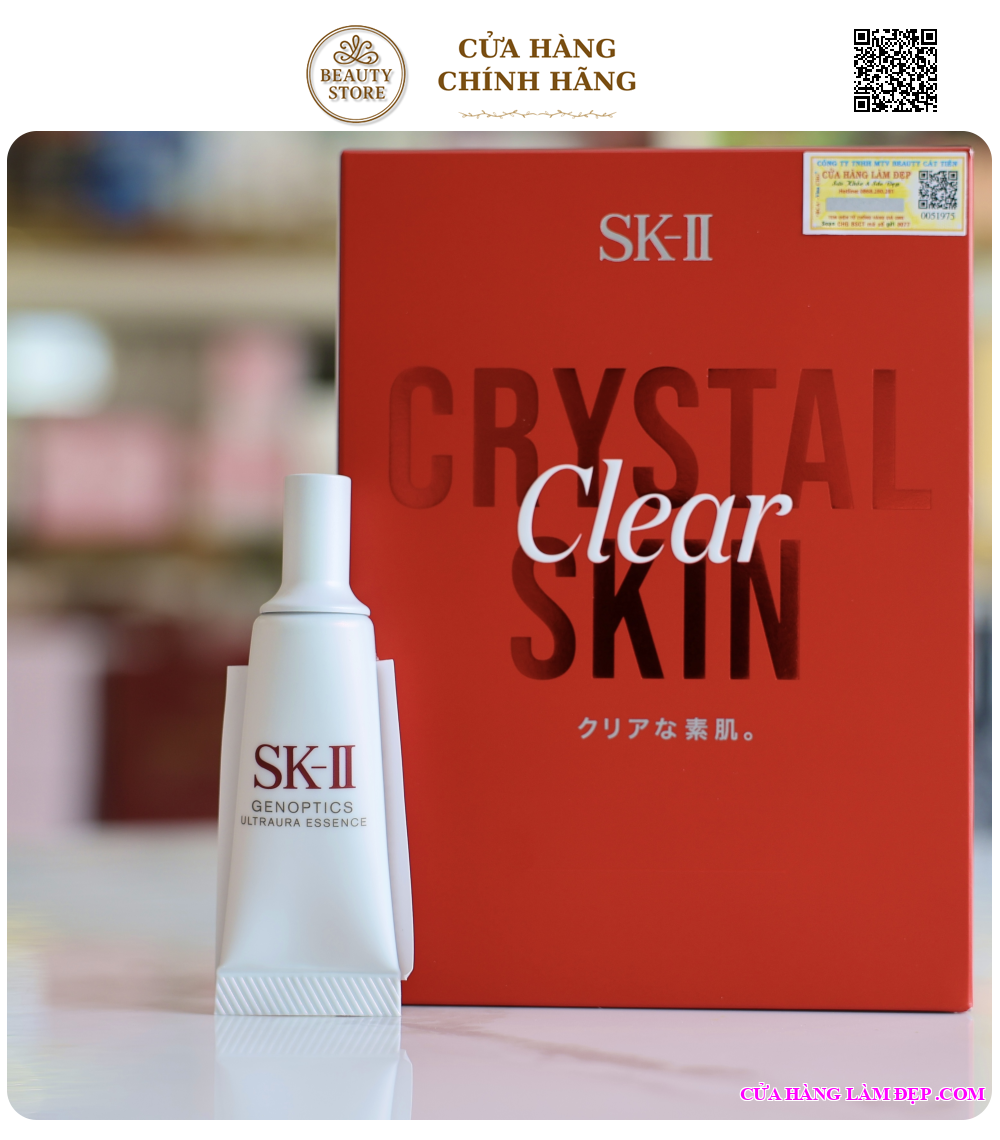 - Serum trắng da trẻ hóa SK-II Genoptics Ultraura Essence 10ml: Là sản phẩm trắng da mới nhất của nhà SK2, có nhiều thành phần cải tiến, làm trắng mạnh mẽ hơn, nhưng đi kèm phục hồi, trẻ hóa làn da của bạn.