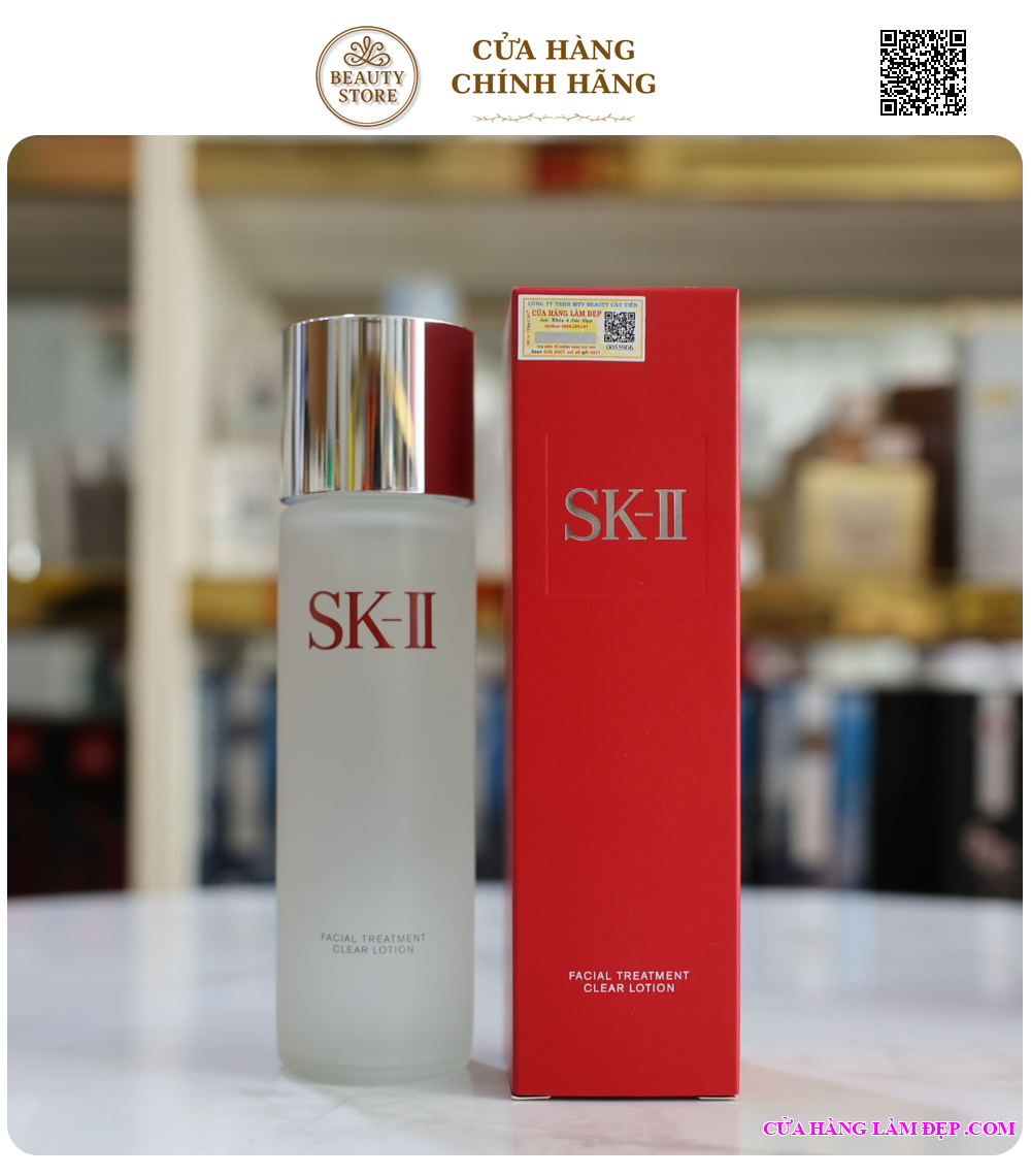 Bước 2: SK-II Facial Treatment Clear Lotion. Thấm vào bông và lau nhẹ toàn mặt để làm sạch sâu