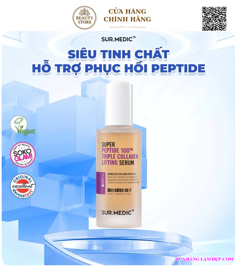 Tại hệ thống Cửa Hàng Làm Đẹp, sản phẩm Siêu Tinh Chất SUR.MEDIC Super Peptide 100TM Collagen Lifting Serum Phục Hồi Và Trẻ Khỏe Da 50ml từ Hàn Quốc có giá 680.000 VNĐ