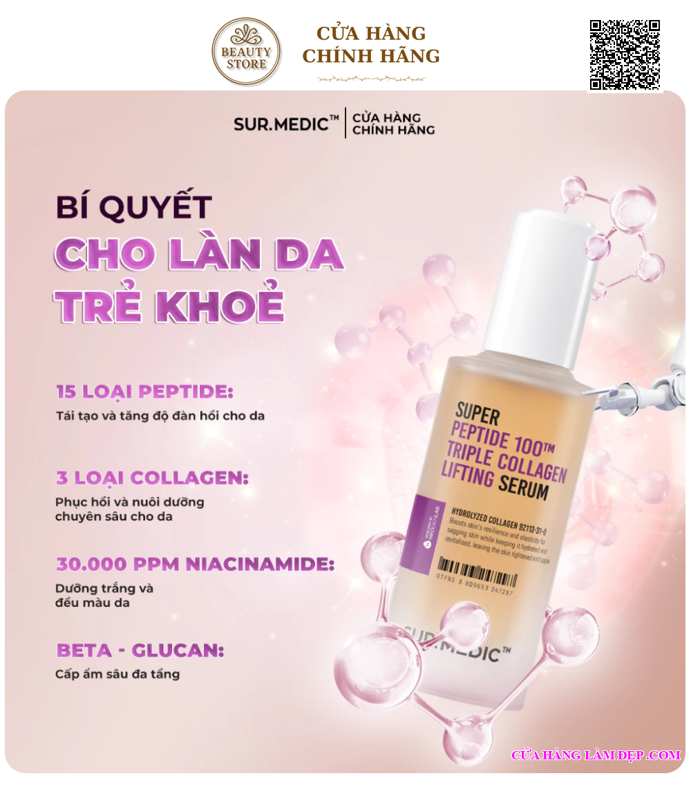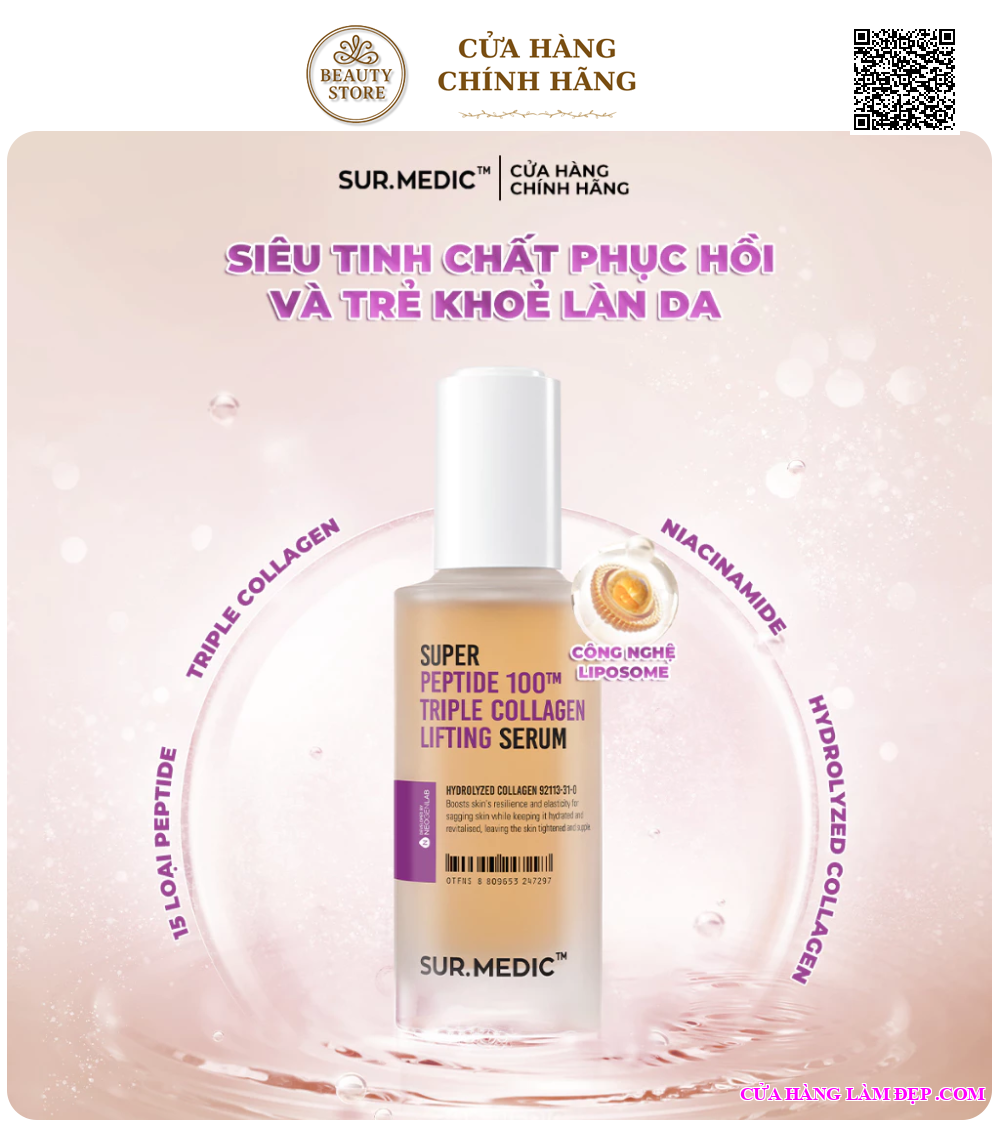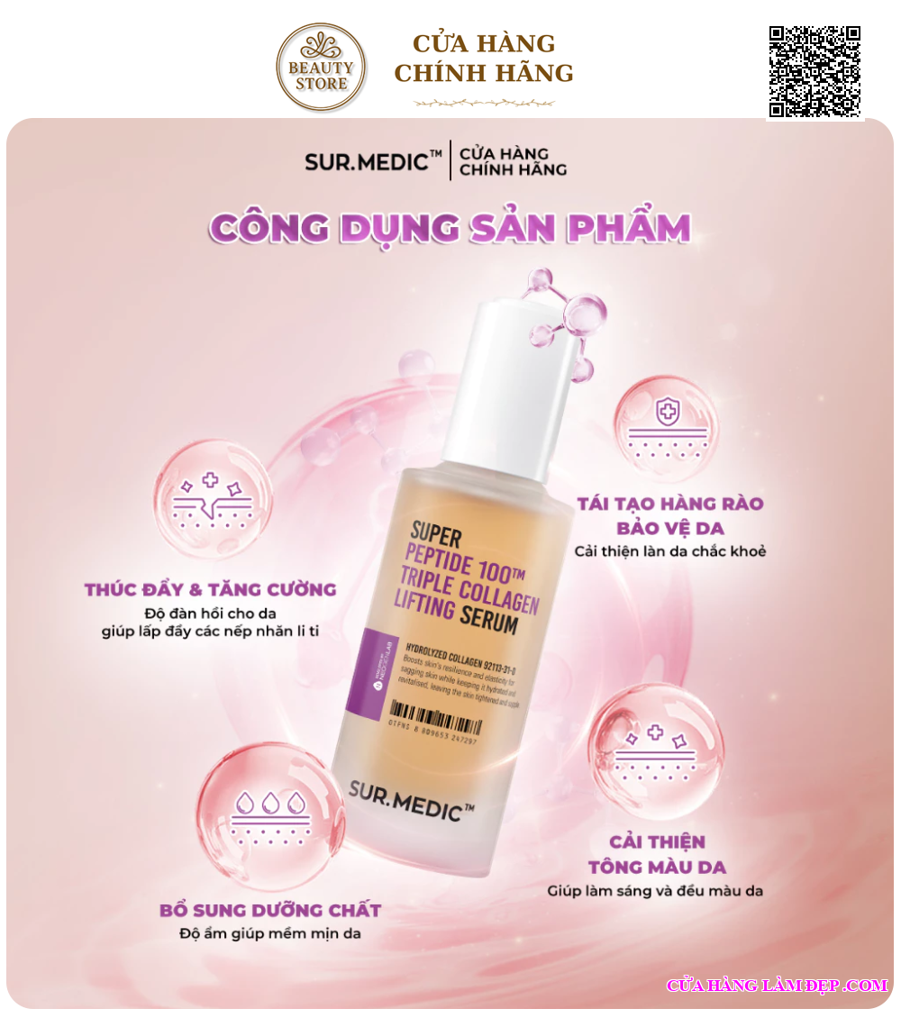 3. Công dụng Siêu Tinh Chất SUR.MEDIC Super Peptide 100TM Collagen Lifting Serum Phục Hồi Và Trẻ Khỏe Da