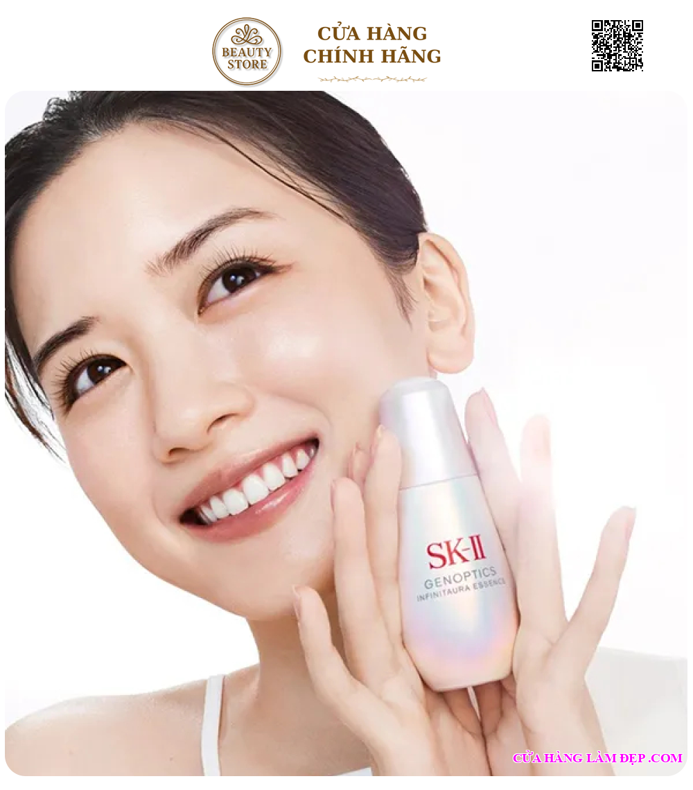 SK-II GenOptics Infinitaura Essence là tinh chất dưỡng trắng cao cấp đến từ thương hiệu SK-II (Nhật Bản). Sản phẩm ứng dụng công nghệ mới với phức hợp "Photonic Aura" và PITERA™ độc quyền nhằm cải thiện sắc tố da, làm sáng đều màu và mang lại làn da rạng rỡ, mịn màng như ánh hào quang.