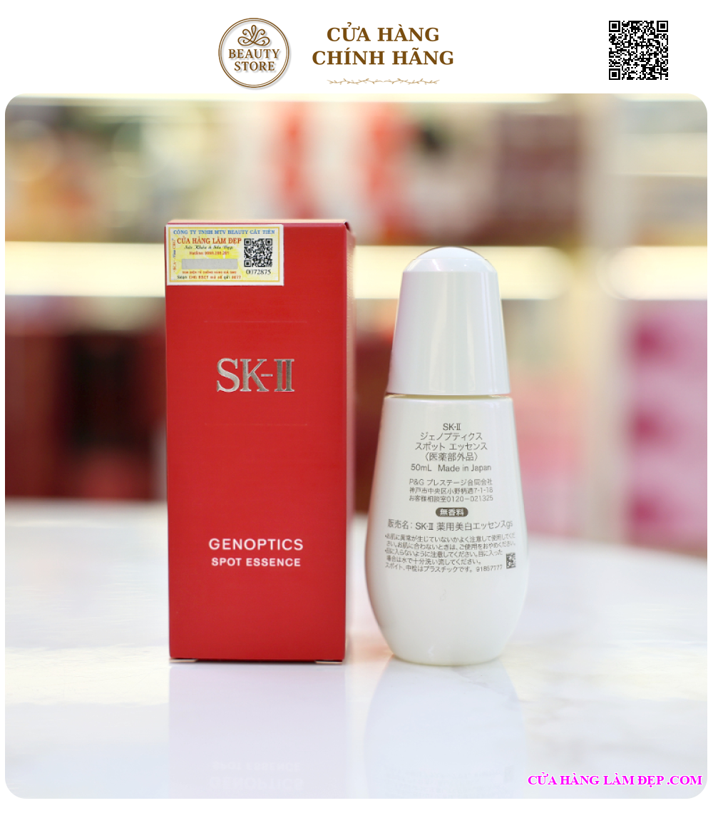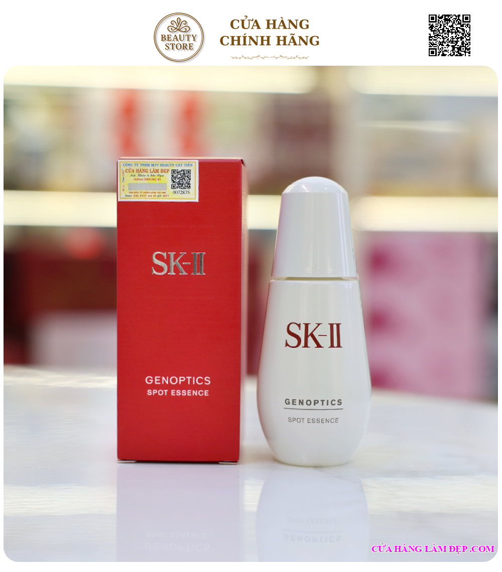 - SK-II Genoptics Spot kết hợp giữa phức hợp mờ nám độc quyền và chiết xuất thực vật giàu dưỡng chất, không chỉ mang lại hiệu quả giảm thiếu đáng kể những vết thâm nám, sạm da hay tàn nhang, mà còn nuôi dưỡng làn da khoẻ mạnh, trắng sáng, hạn chế sự xuất hiện trở lại của hắc tố melanin.