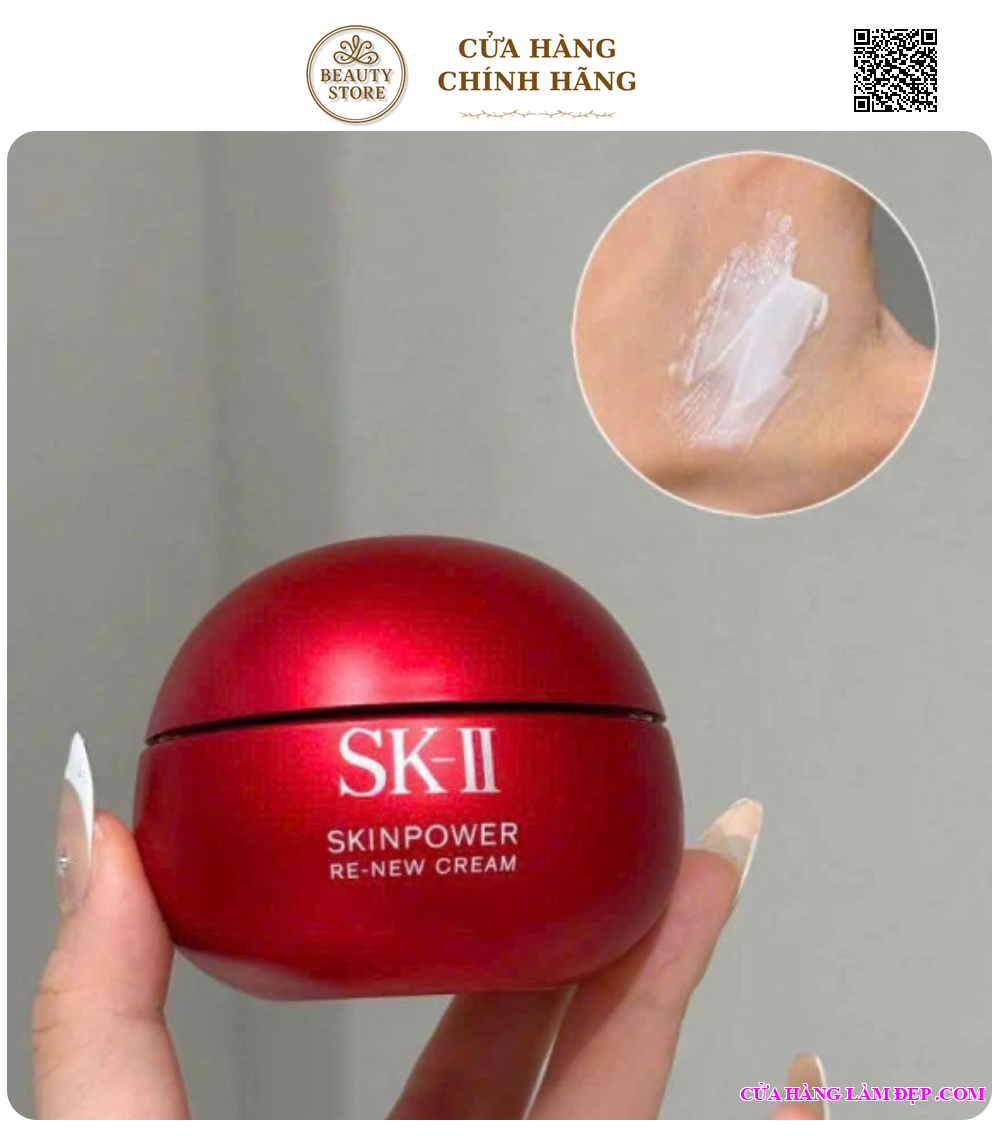 SK-II Skinpower Re-New Cream là dòng kem dưỡng chống lão hóa nâng cấp của SK-II, tập trung cải thiện độ săn chắc, đàn hồi, làm đầy da và giảm nếp nhăn nhỏ, mang lại làn da căng bóng, mịn màng nhờ kết hợp độc đáo giữaPITERA, chiết xuất rễ mẫu đơn, và các thành phần chống oxy hóa, giúp trẻ hóa từ sâu bên trong, thích hợp cho mọi loại da và lứa tuổi.