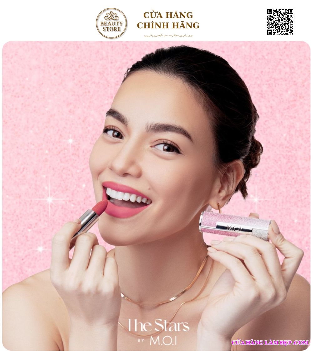 - Son thỏi M.O.I The Stars No.3 To The Moon màu hồng mật đem đến lớp finish lì mịn như phủ nhung, lắp đầy rãnh môi.