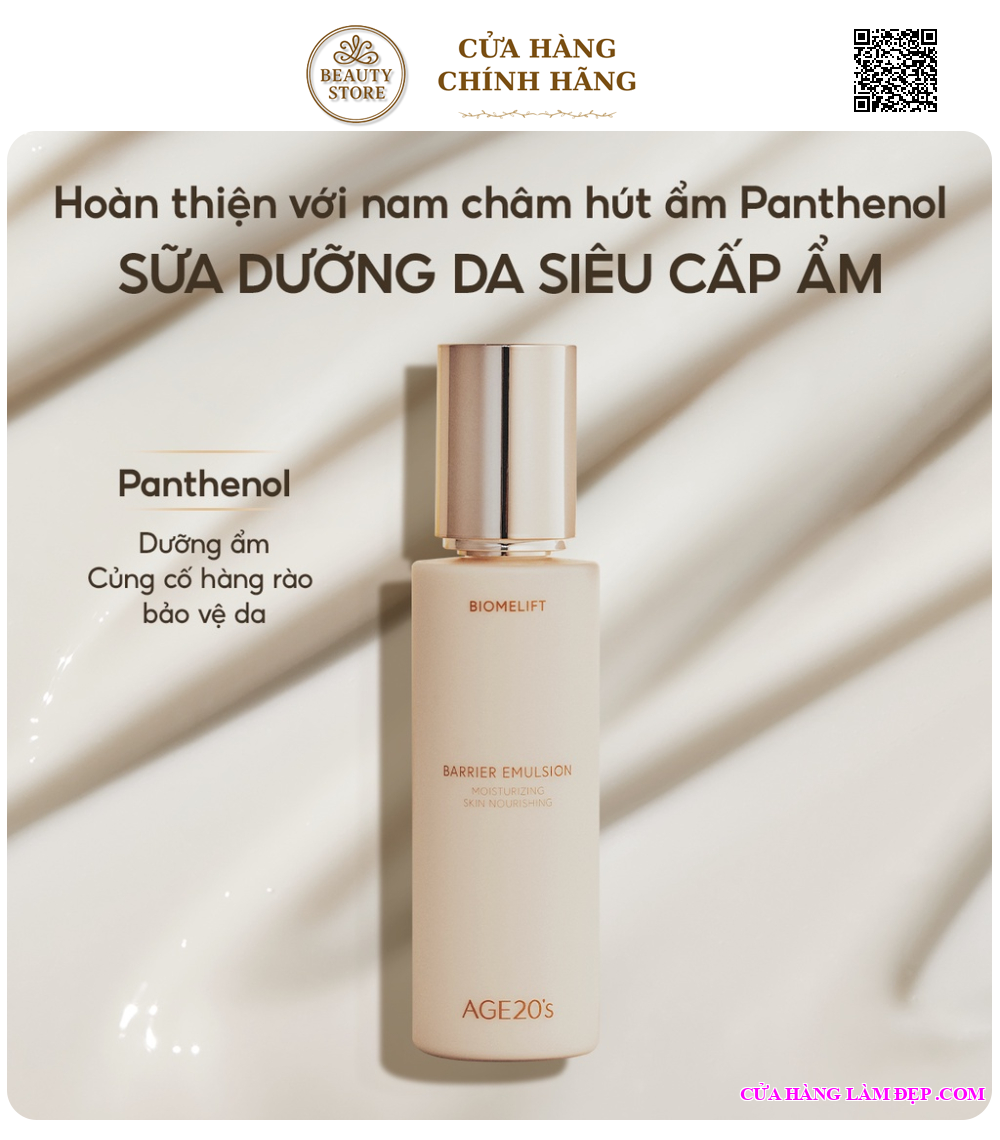 Sữa dưỡng da Age 20’s Biomelift Barrier Emulsion giúp cung cấp độ ẩm, làm sáng da, chống lão hóa và nếp nhăn, hỗ trợ da luôn mịn màn, rạng rỡ.