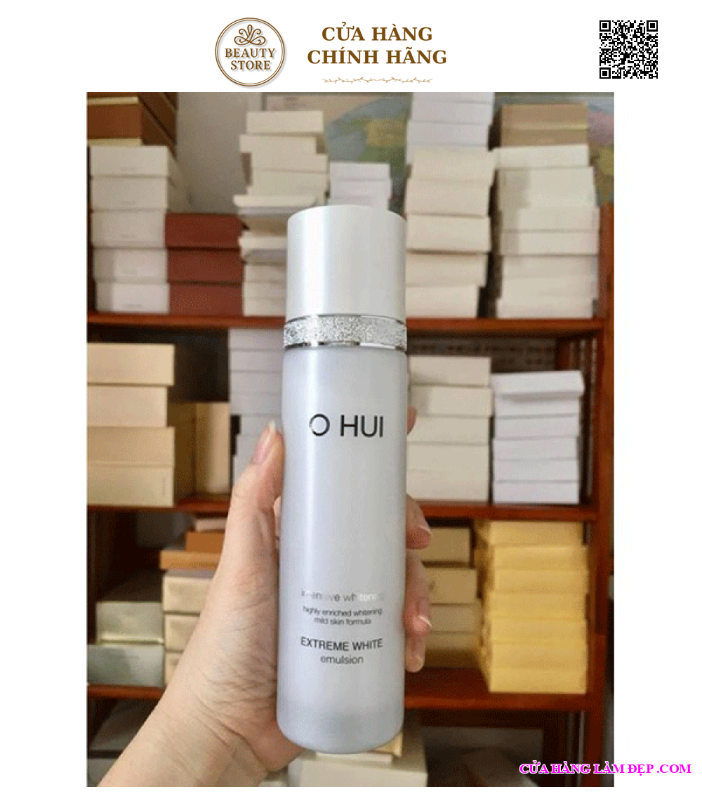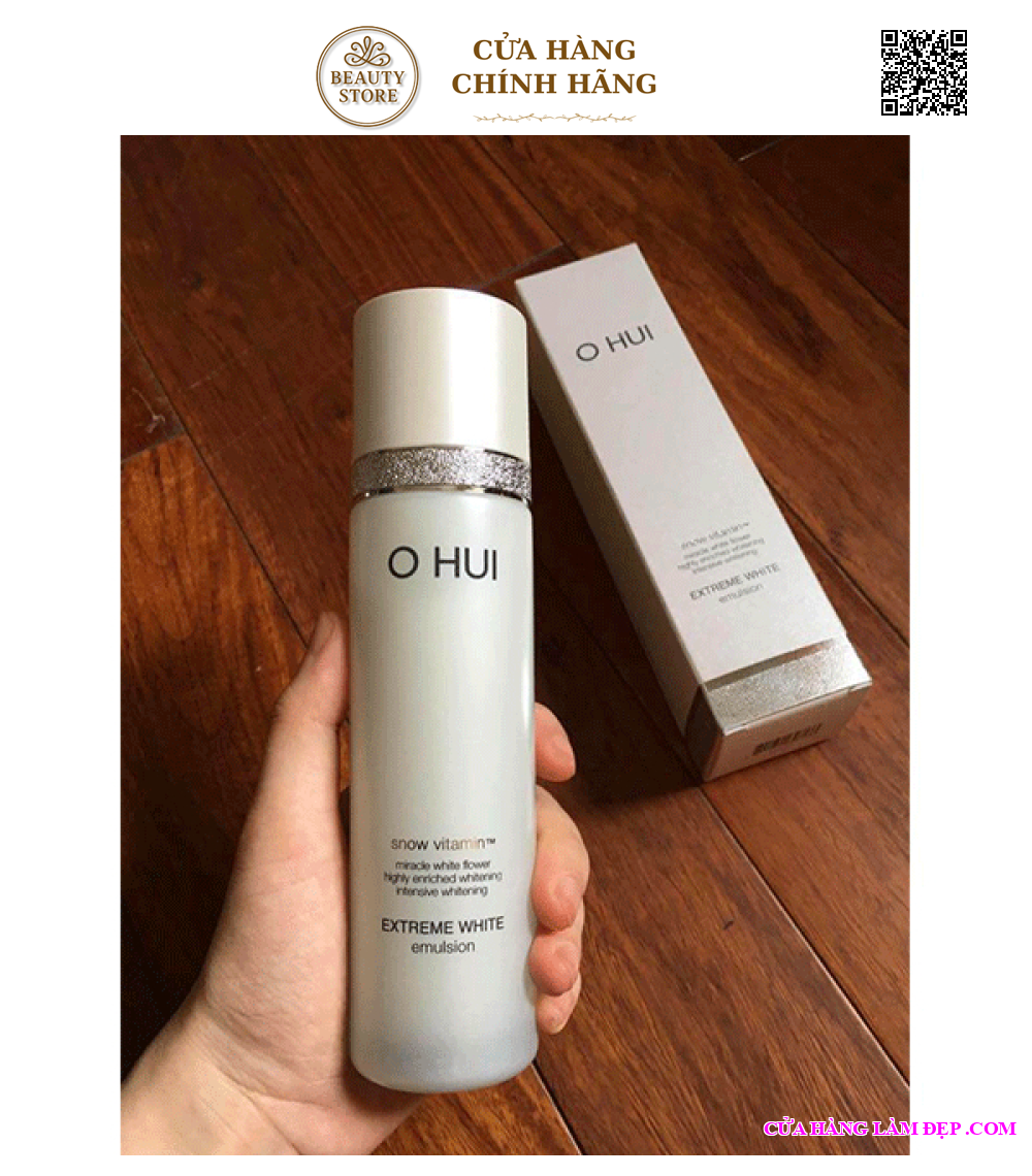 - Sữa Dưỡng Trắng Da Extreme White Emulsion Ohui là một trong những bước cơ bản để chăm sóc da. Cung cấp nước và các dưỡng chất cần thiết để làn da mềm mại hơn. Cải thiện sắc tố trên da, mang làn da trắng sáng, rạng rỡ trở lại với bạn. Được thiết kế cao cấp với chai thủy tinh trắng và đường vân lấp lánh bên dưới nắp xoay, sản phẩm tạo cảm giác chắc chắn, dễ chịu khi cầm trên tay. Đặc biệt là mùi hương thơm thoang thoảng đặc trưng của các dòng sản phẩm Ohui Extreme White.