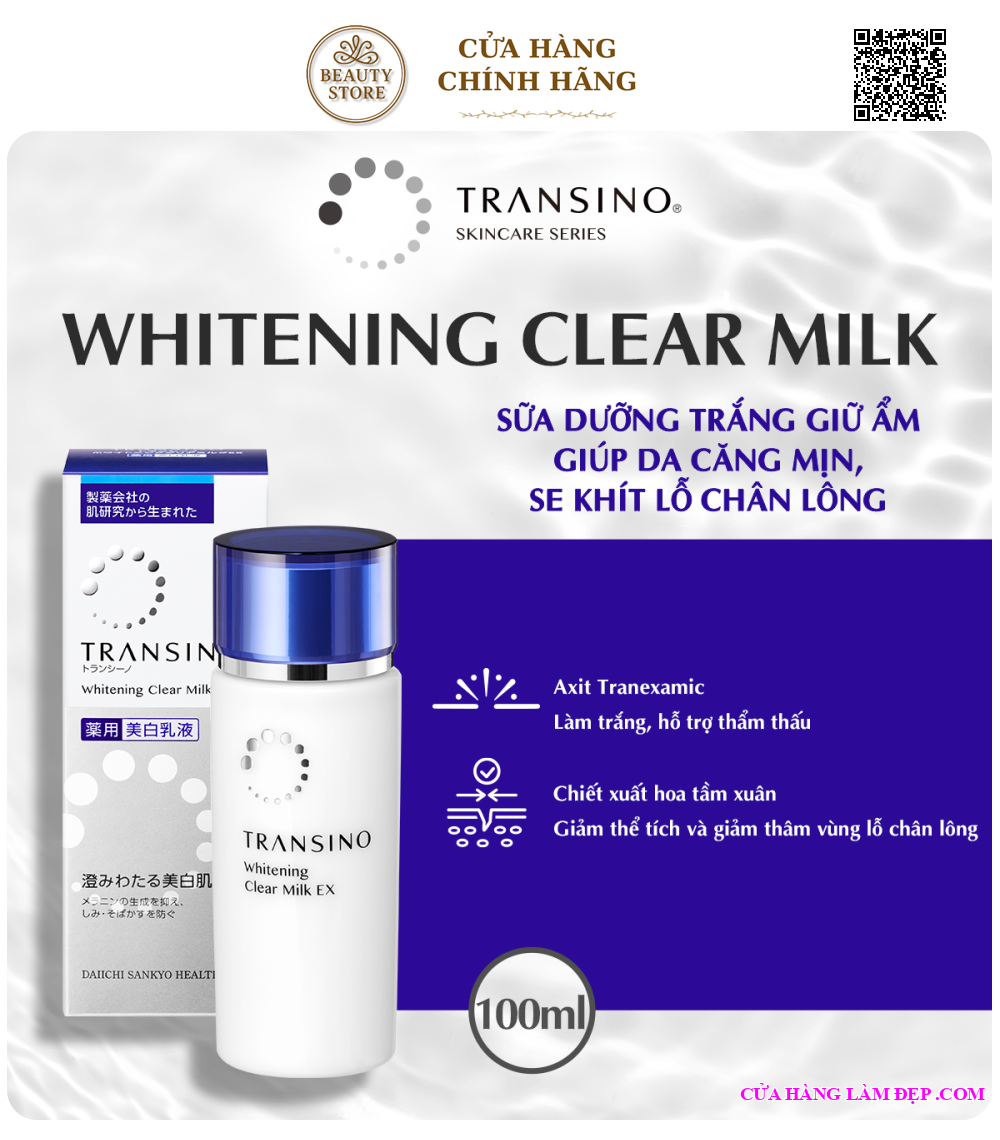 - Bạn có thể tìm mua Sữa Dưỡng Trắng Da, Ngăn Ngừa Nám Và Tàn Nhang Transino Whitening Clear Milk EX qua website: cuahanglamdep.com