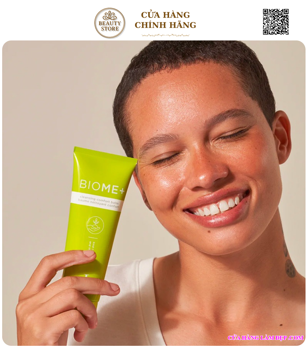 Sữa rửa mặt BIOME+ Cleansing Comfort Balm dịu nhẹ dùng được sáng và tối. Một cải tiến mới với dạng kem có thể thoa rửa mặt trực tiếp trên nền da khô nhờ chứa thành phần giữ nước. Massage trong 1 phút và rửa lại bằng nước sạch hoặc lau sạch bằng khăn giấy ướt.
