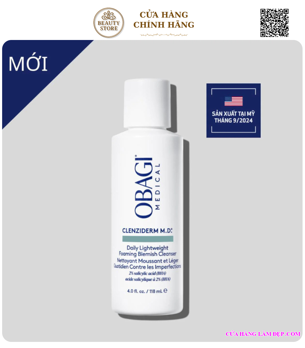 Sữa rửa mặt Tẩy tế bào chết Obagi Clenziderm M.D. Foaming Blemish có xuất xứ từ Mỹ .