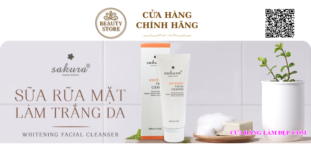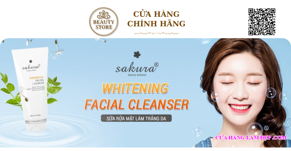 - Sữa rửa mặt trắng da Sakura với thành phần chiết xuất tự nhiên dịu nhẹ cho da là giải pháp chăm sóc, làm sạch da hoàn hảo giúp loại bỏ hoàn toàn bụi bẩn, dầu nhờn, tế bào da chết. Đồng thời các dưỡng chất còn duy trì độ và bổ sung độ ẩm tự nhiên giúp da mượt mà, ngừa bong tróc.