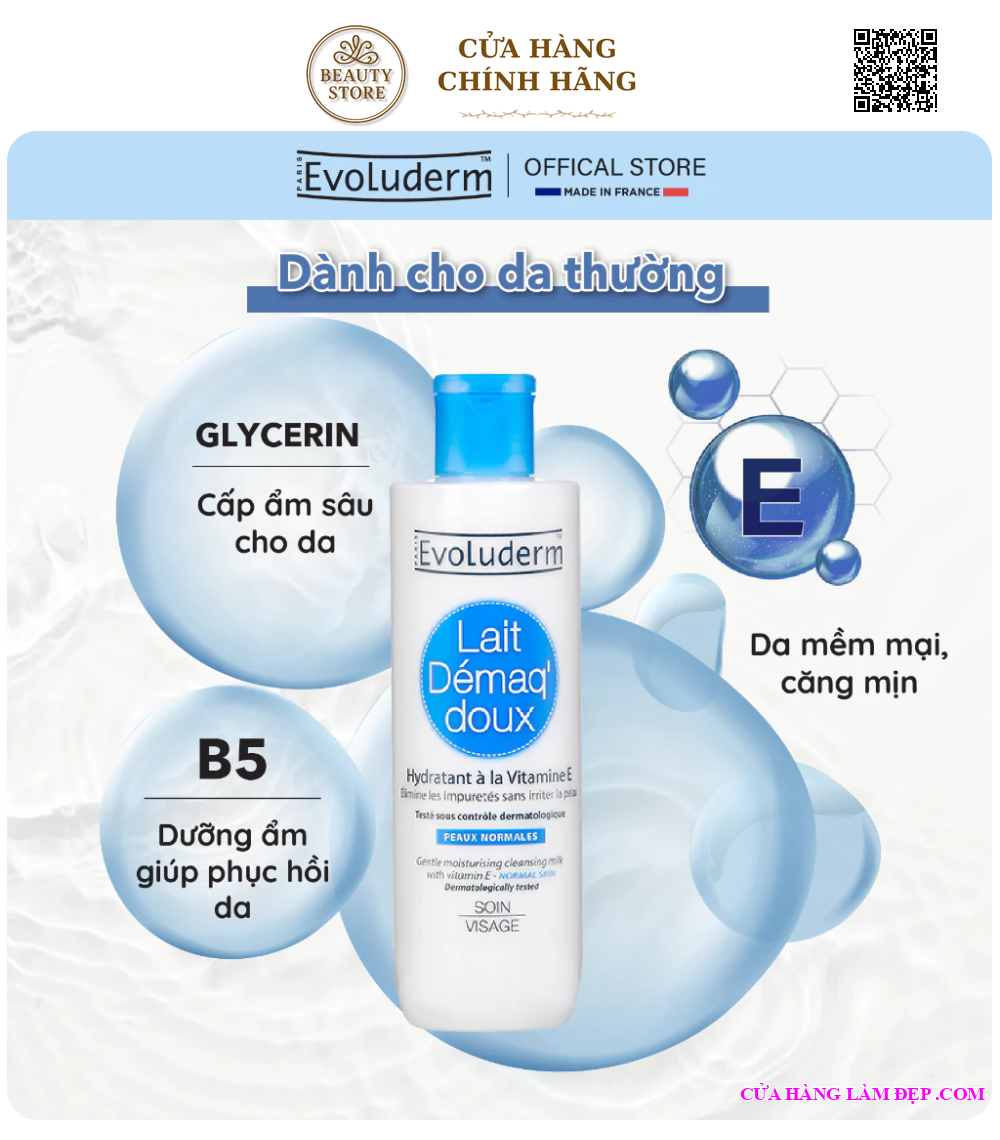 Địa chỉ mua Sữa Rửa Mặt Evoluderm Lait Demaq doux Tẩy Trang Hàng Ngày 250ml từ Pháp chính hãng tại Hà Nội :