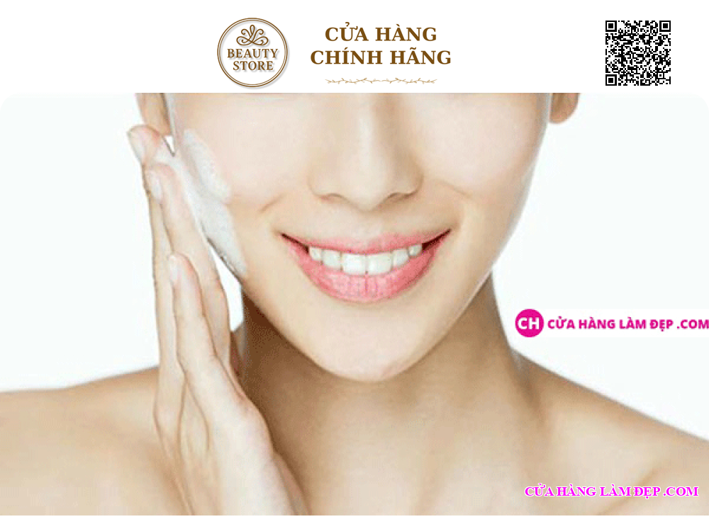 + Làm ướt mặt với nước, lấy 1 lượng sữa rửa mặt vừa đủ ra lòng bàn tay. Tạo bọt cùng với 1 ít nước.