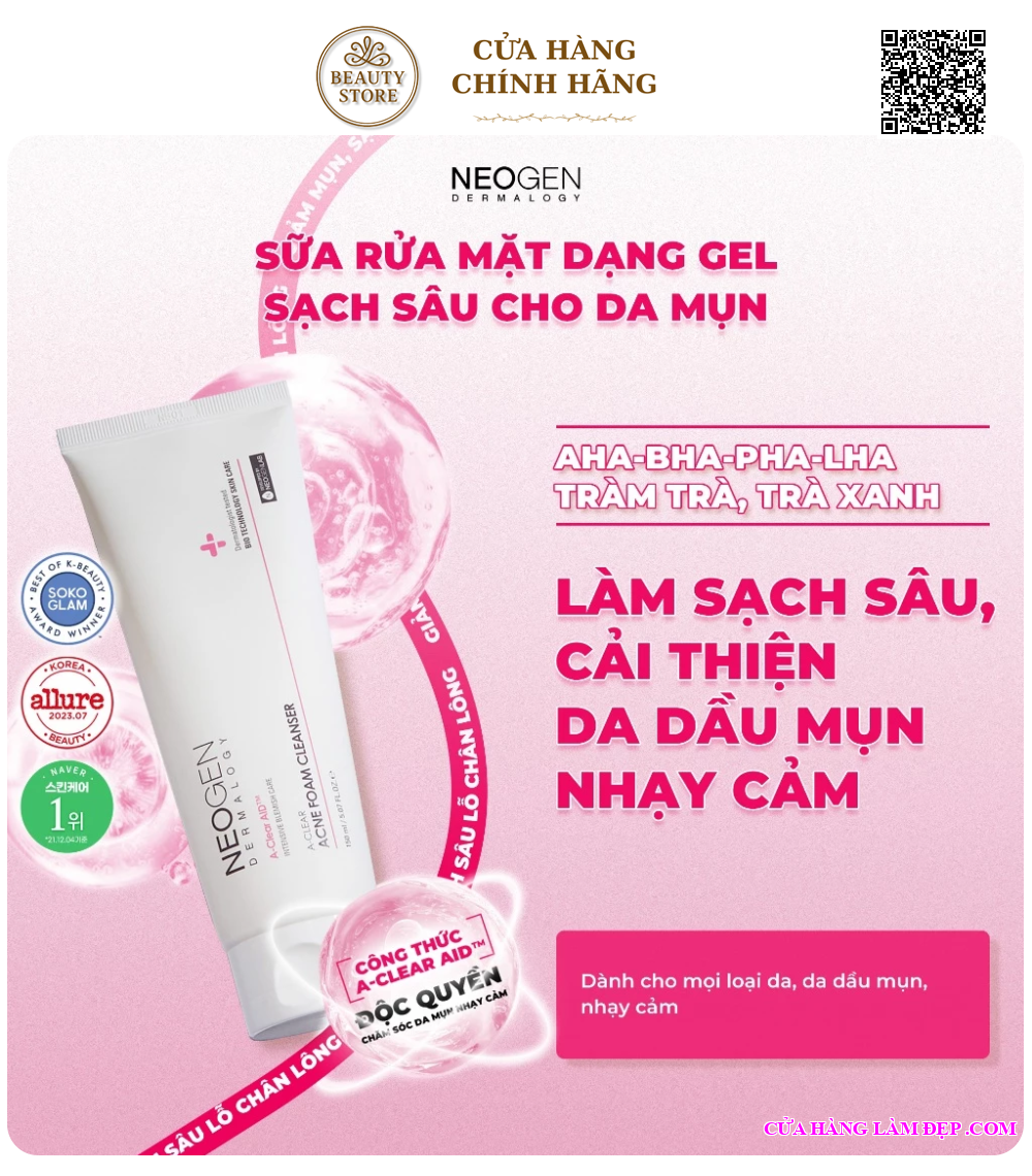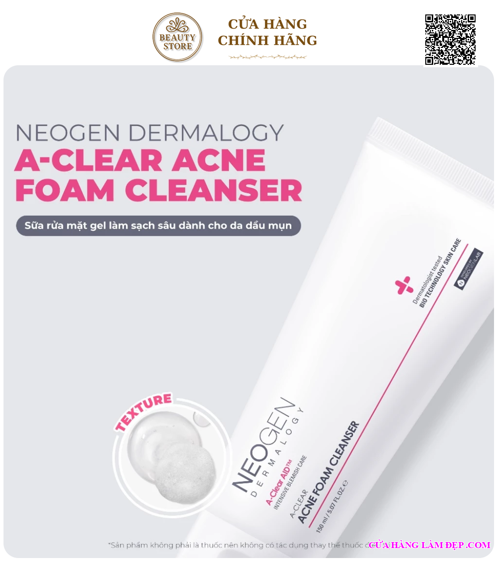 Tại hệ thống Cửa Hàng Làm Đẹp, sản phẩm Neogen Dermalogy A-clear Acne Foam Cleanser Sữa Rửa Mặt Dạng Gel Làm Sạch Sâu Cho Da Dầu Mụn 150ml có giá 399.000 VNĐ