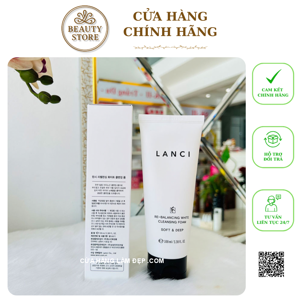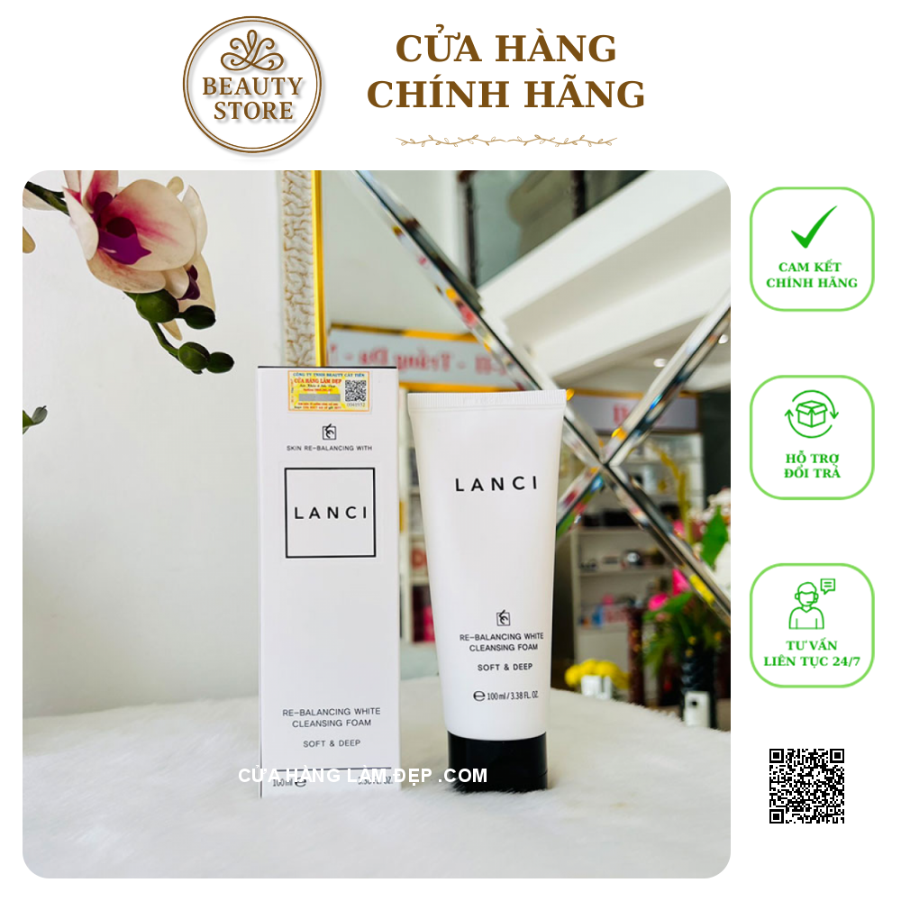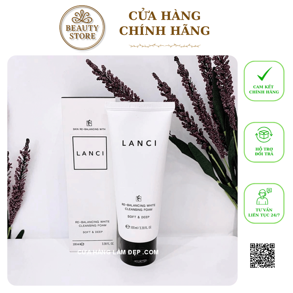 - Sữa Rửa Mặt Re-Balancing White Cleansing Foam Lanci làm sạch sâu, loại sạch chất bẩn và tế bào chết, giúp da khỏe mạnh, trắng hồng mịn màng. Các tinh chất từ thiên nhiên còn giúp cấp ẩm, làm mềm da, thu hẹp lỗ chân lông, tăng đàn hồi, giảm nếp nhăn.