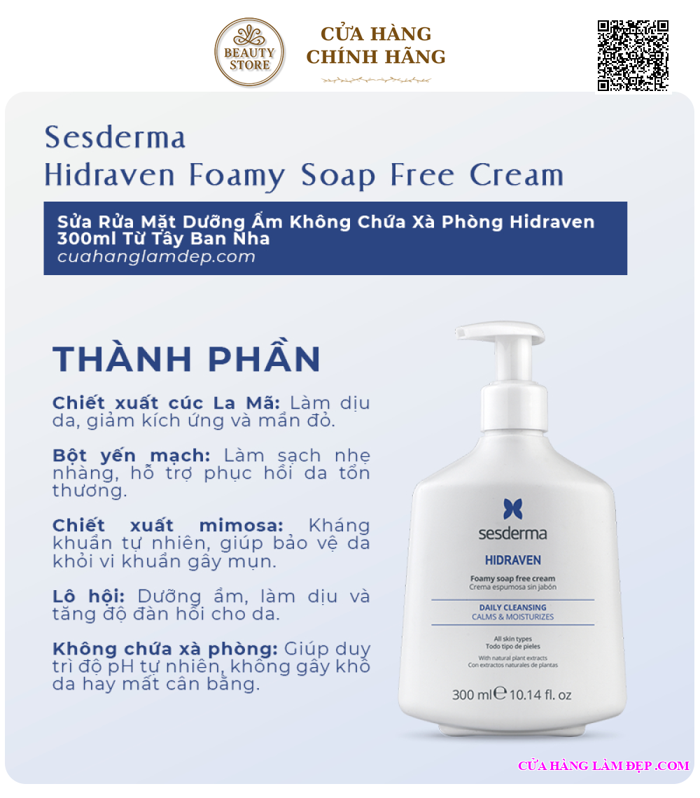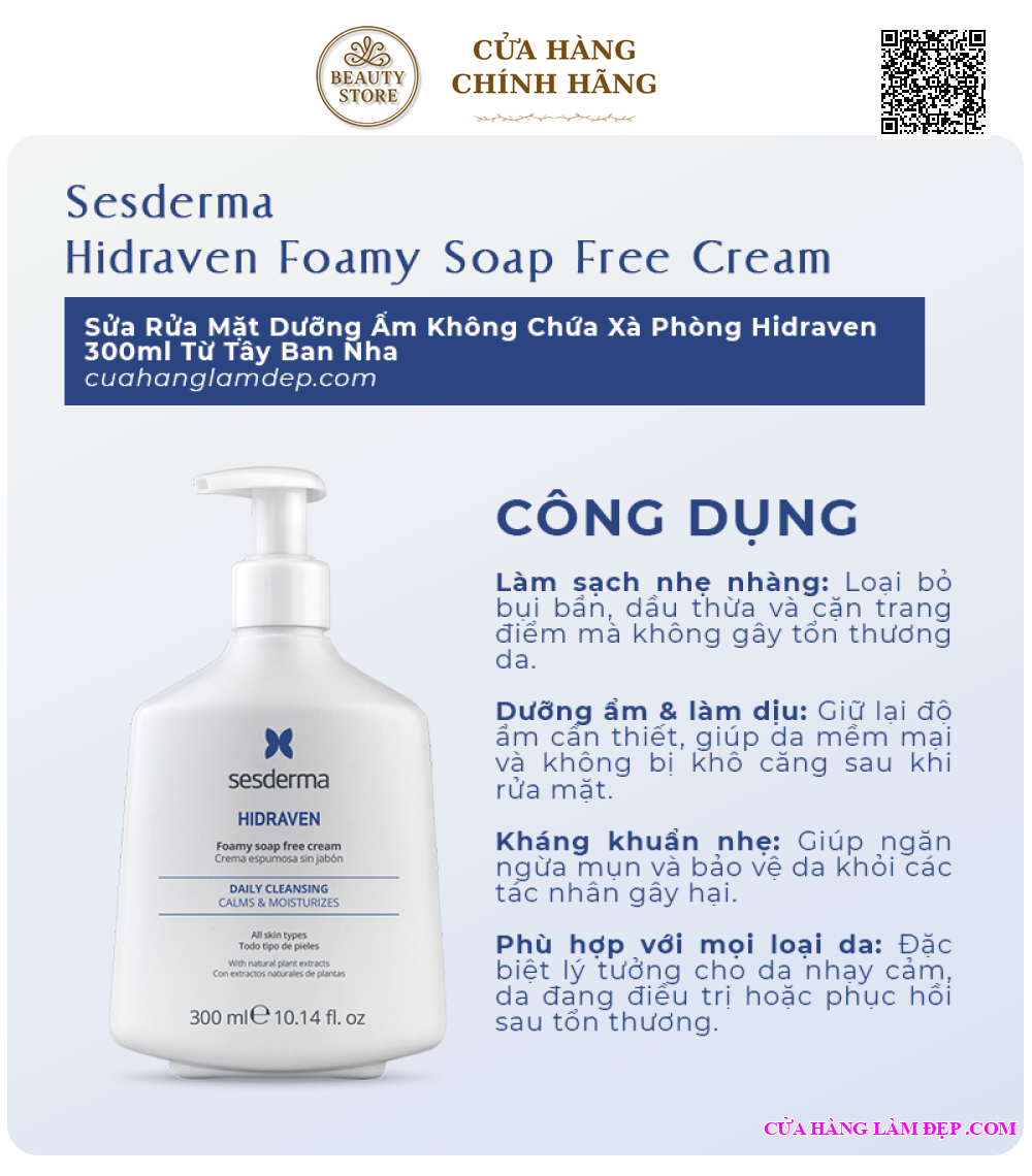 1. Sữa Rửa Mặt Sesderma Hidraven Foamy Soap Free Cream Dưỡng Ẩm Không Chứa Xà Phòng Hidraven có tốt không?