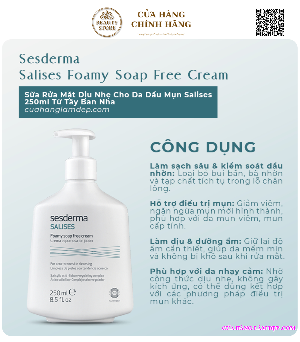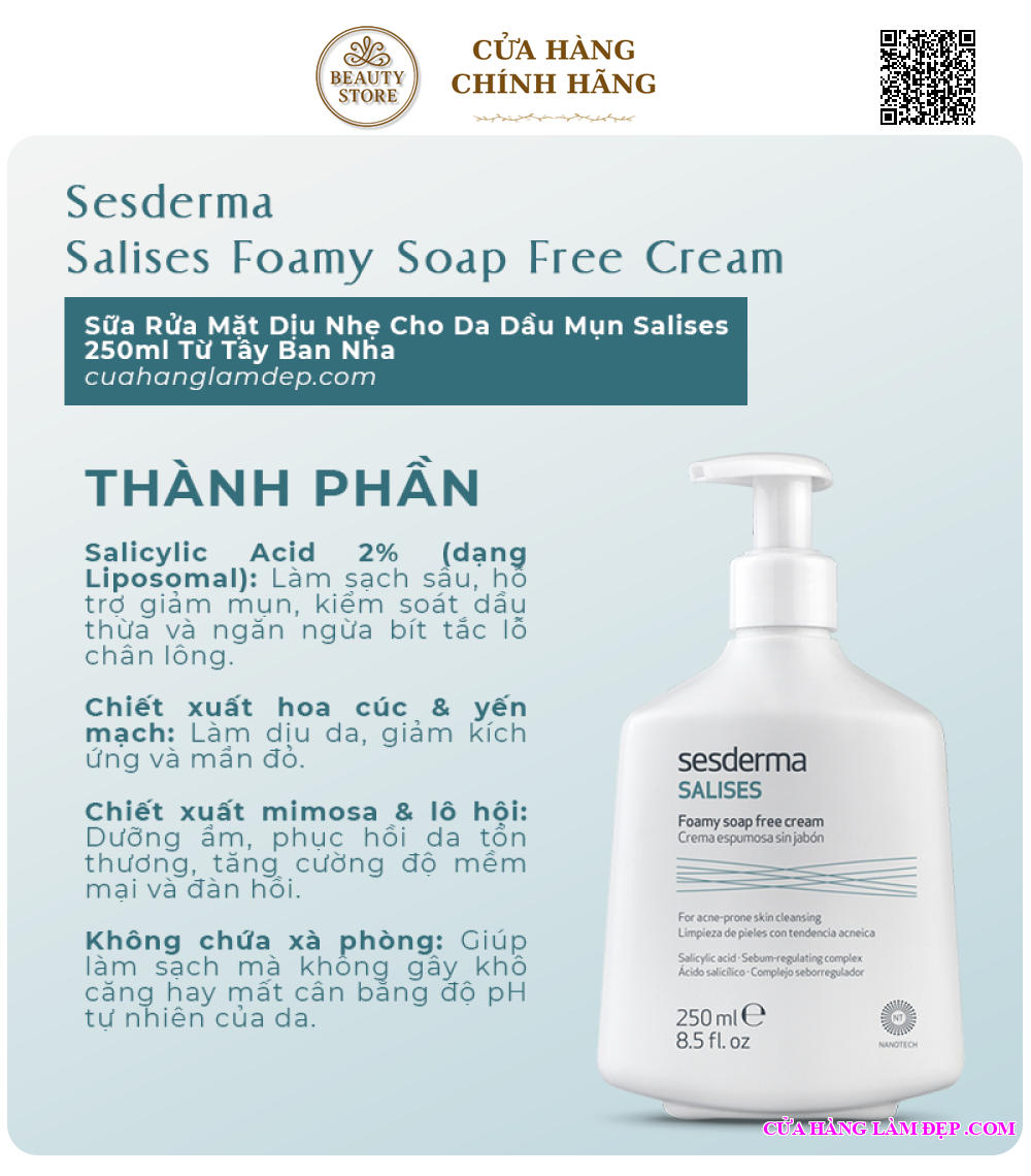 1. Sữa Rửa Mặt Sesderma Salises Foamy Soap Free Cream Dịu Nhẹ Cho Da Dầu Mụn Salises có tốt không?