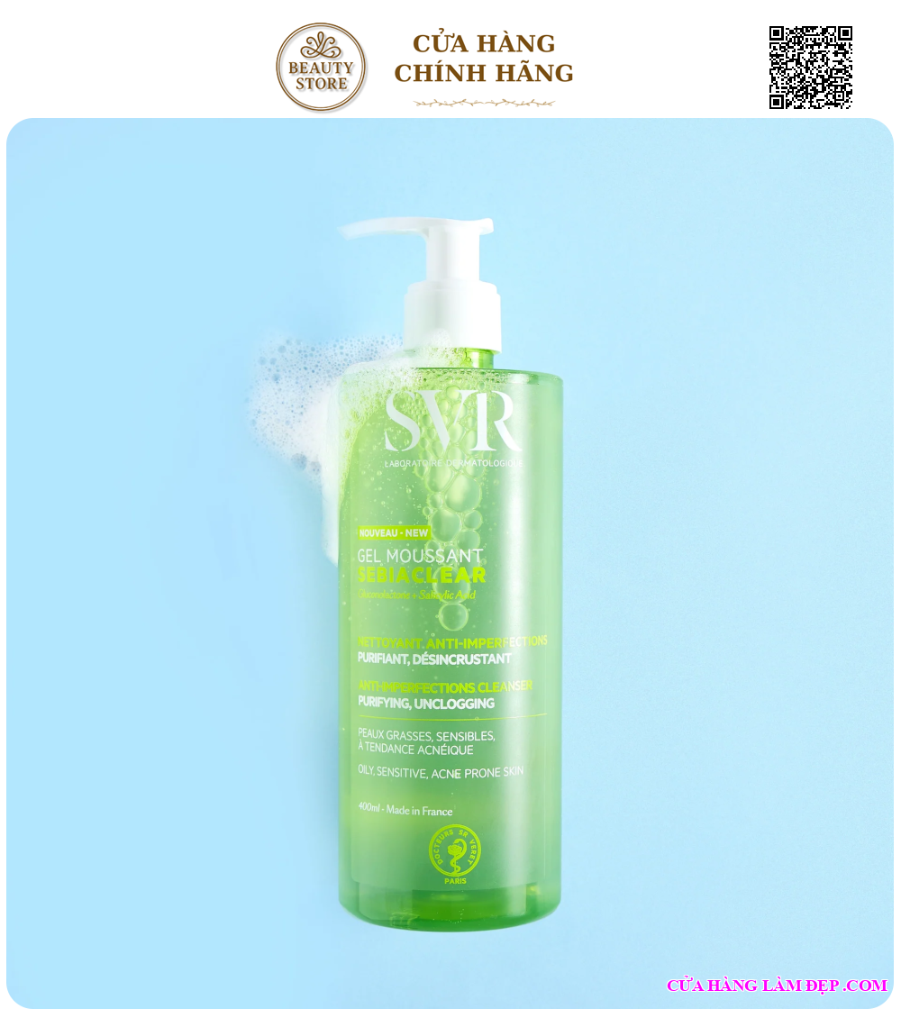 Tại hệ thống Cửa Hàng Làm Đẹp, sản phẩm Sữa Rửa Mặt SVR Sebiaclear Gel Moussant Dạng Gel Cho Da Dầu Mụn Không Xà Phòng 400ml Từ Pháp có giá 520.000 VNĐ