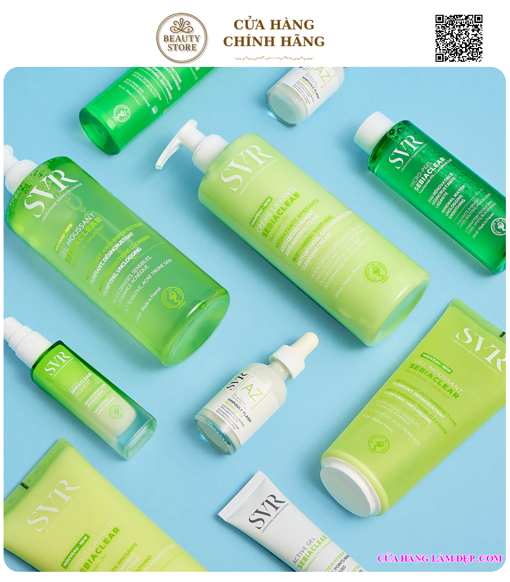 SVR Sebiaclear Gel Moussant là dòng sữa rửa mặt dịu nhẹ đến từ thương hiệu dược mỹ phẩm Pháp SVR, nổi tiếng với các sản phẩm chăm sóc da dầu mụn nhạy cảm. Sản phẩm không chứa xà phòng, có khả năng tạo bọt kem mịn giúp làm sạch sâu, loại bỏ bã nhờn, bụi bẩn và tế bào chết mà không gây khô da hay kích ứng.