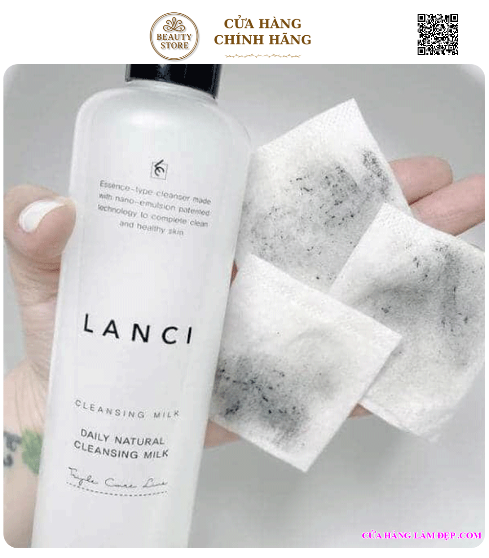 - Sữa Tẩy Trang Daily Natural Cleansing Milk Lanci chứa các thành phần thiên nhiên giàu dưỡng chất, cấp ẩm, vitamin cho da luôn khỏe mạnh, chống lão hóa. Da được thanh lọc, làm sạch vô cùng nhẹ nhàng, an toàn, không có mùi hóa học, không gây kích ứng, đây chính là điểm cộng lớn của Sữa Tẩy Trang Daily Natural Cleansing Milk Lanci mà bạn không nên bỏ qua.