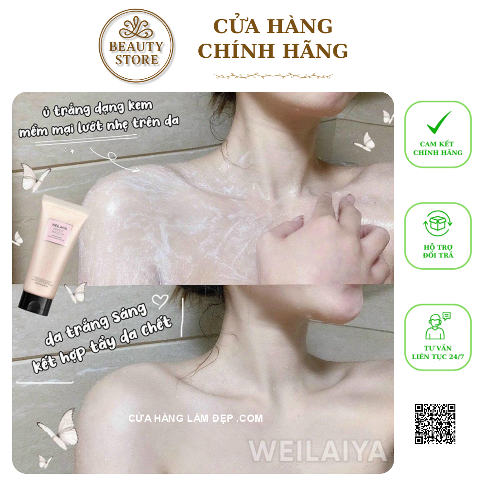 - Tẩy Da Chết, Ủ Trắng Da Weilaiya Niacinamide Brightening Scrub giúp loại bỏ lớp sừng già trên da, cho làn da mịn màng và nâng tone màu da.