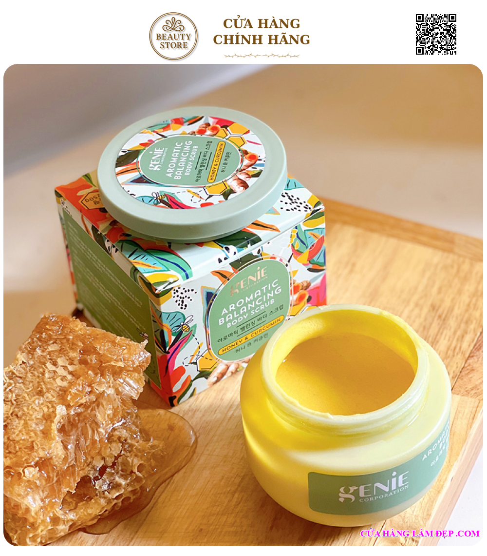- Tẩy tế bào chết Body chiết xuất nghệ & mật ong Aromatic Balancing Body Scrub Genie có thể sử dụng trên toàn thân, dòng tẩy tế bào chết body quốc dân Hàn Quốc.