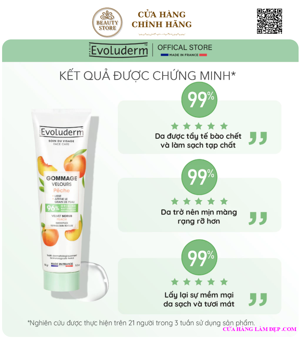 Evoluderm Tẩy Tế Bào Chết Mềm Mịn Da Mặt Chiết Xuất Đào được khách hàng của Hệ Thống Cửa Hàng Làm Đẹp đánh giá cao.