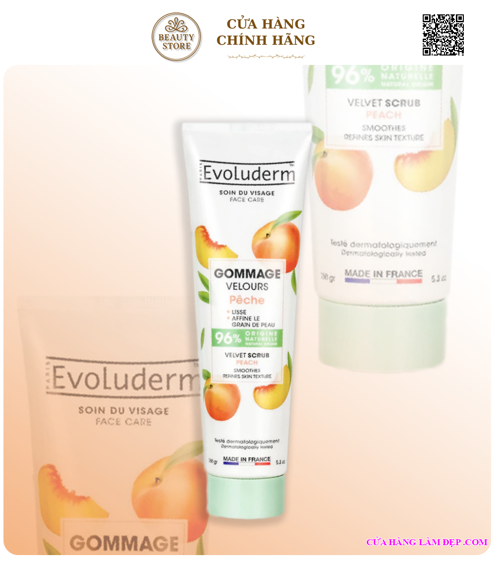 Tại hệ thống Cửa Hàng Làm Đẹp, sản phẩm Evoluderm Tẩy Tế Bào Chết Mềm Mịn Da Mặt Chiết Xuất Đào 150g từ Pháp có giá 195.000 VNĐ