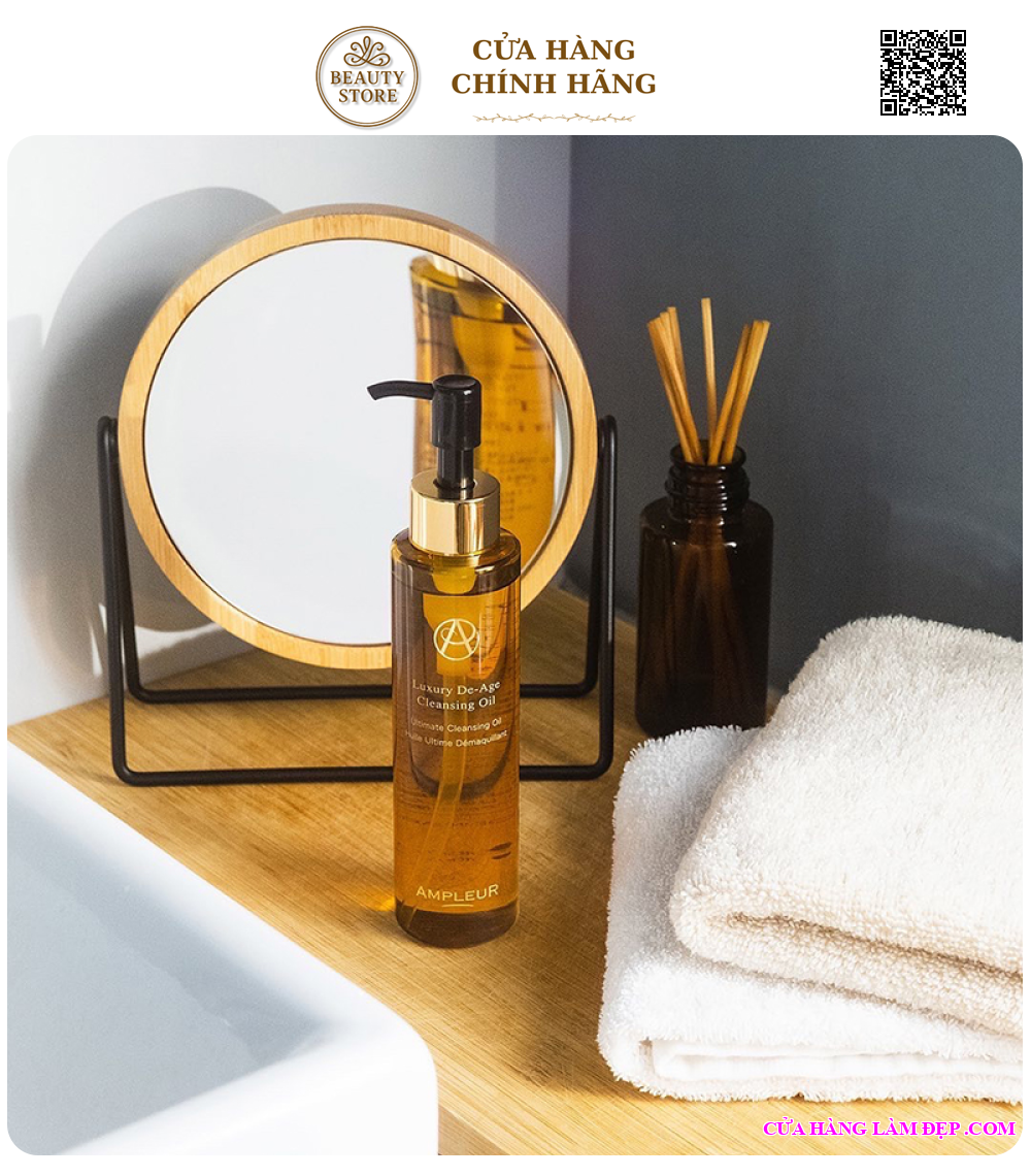 - Dầu tẩy trang Luxury De-Age Cleansing Oil của Ampleur giúp làm sạch sâu, nhanh chóng loại bỏ các vết trang điểm nhưng vẫn giữ độ ẩm cho da, làm dịu da và đem đến cảm giác khoan khoái, dễ chịu.